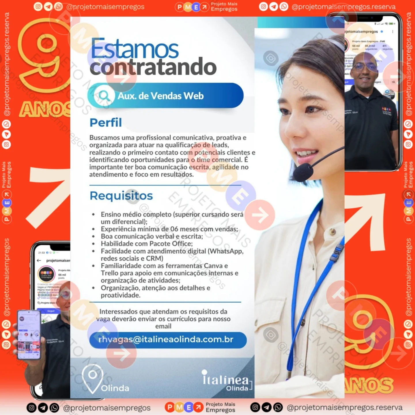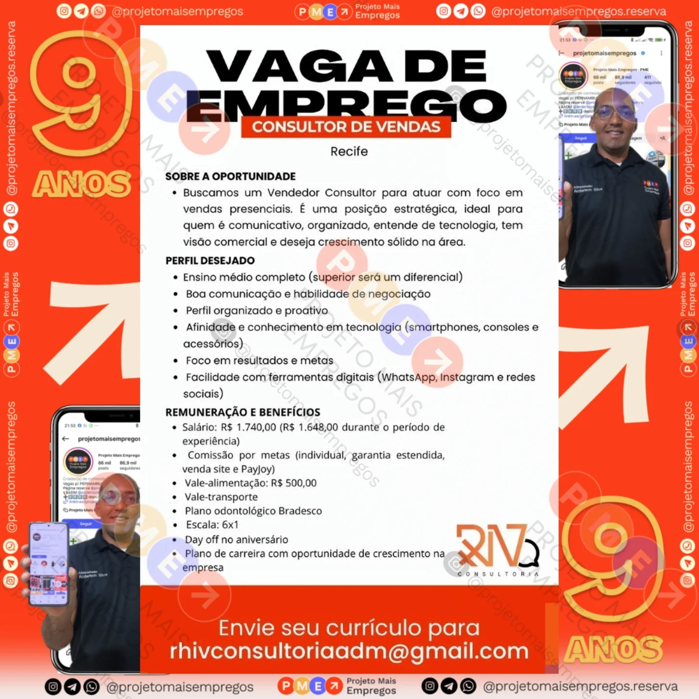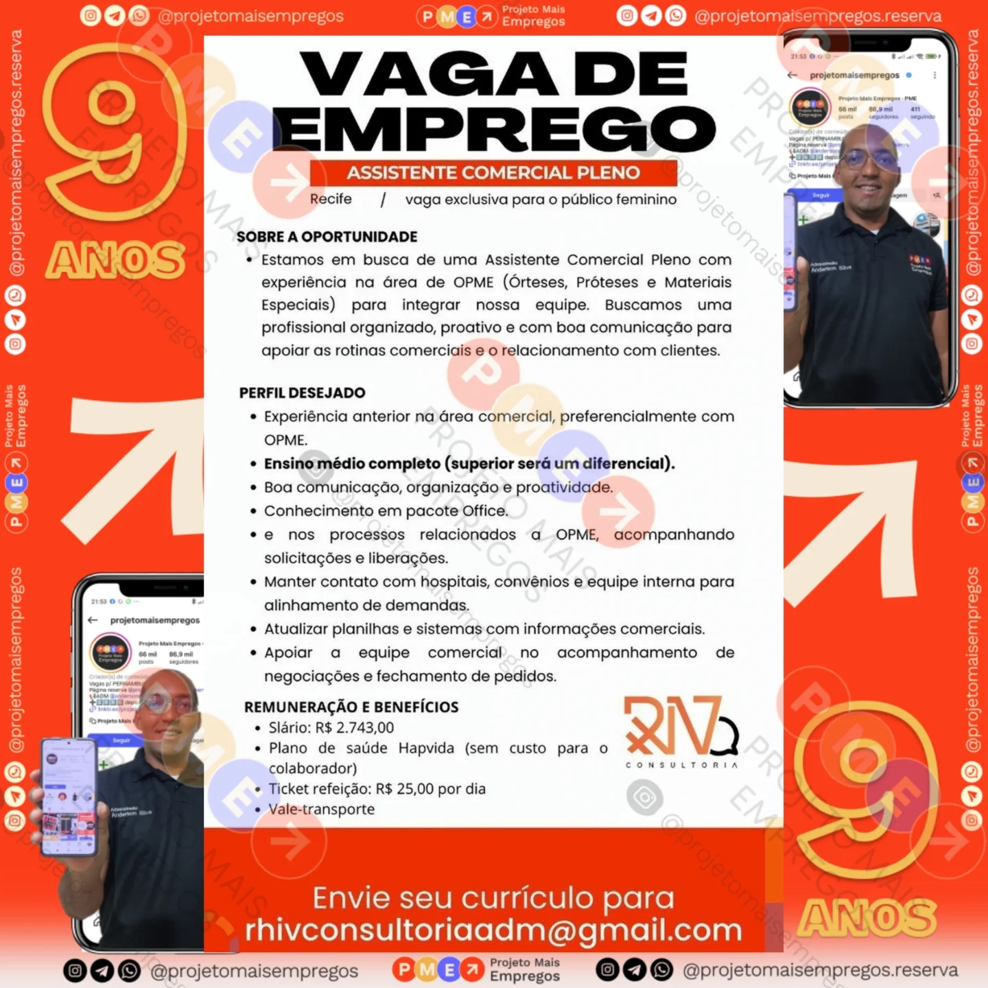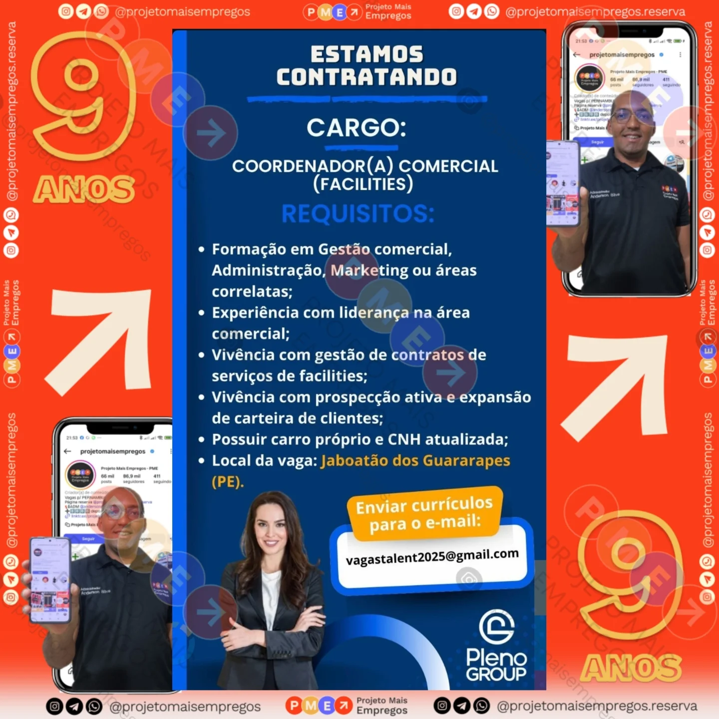 As informações sobre a vaga de emprego, como salário, remuneração, benefícios, requisitos, local de trabalho, forma de candidatura (e-mail ou whatsapp para enviar seu currículo) etc., estarão na imagem acima, caso estejam disponíveis.