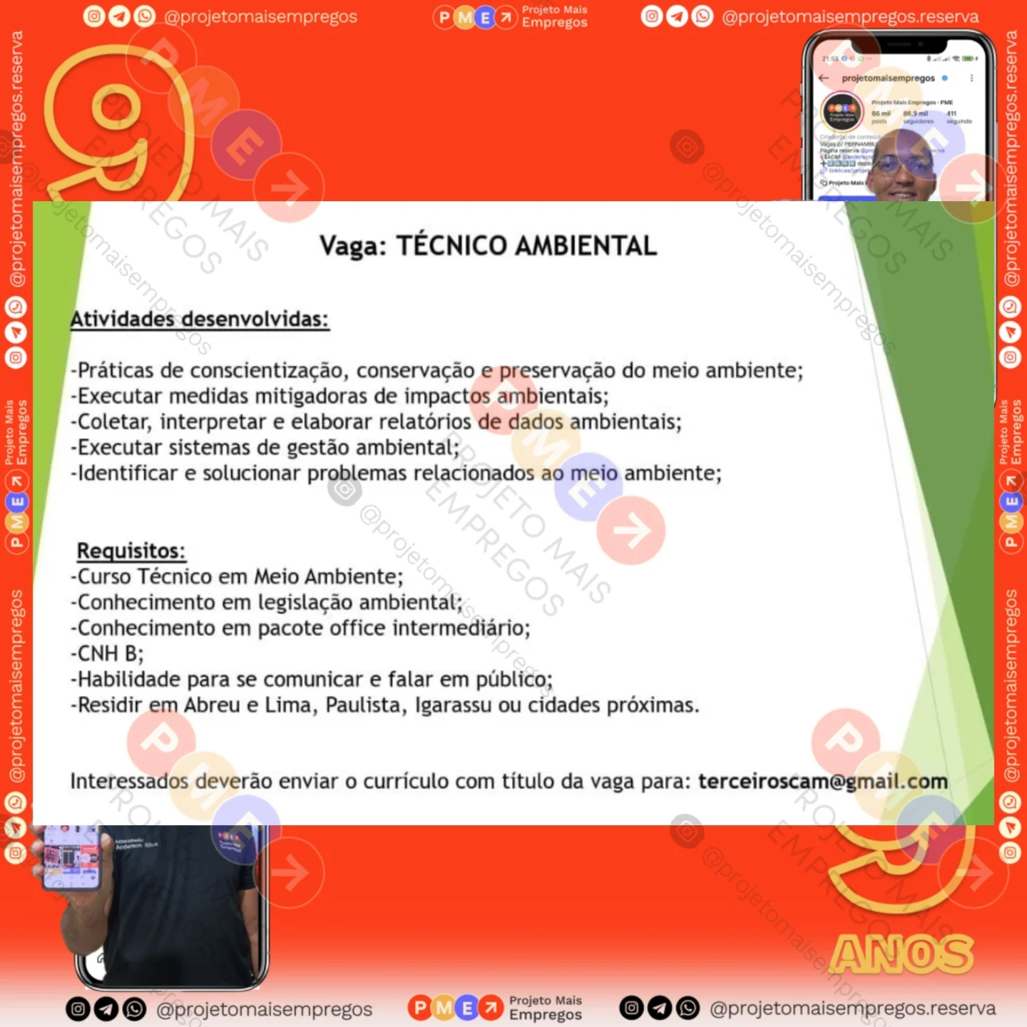 As informações sobre a vaga de emprego, como salário, remuneração, benefícios, requisitos, local de trabalho, forma de candidatura (e-mail ou whatsapp para enviar seu currículo) etc., estarão na imagem acima, caso estejam disponíveis.