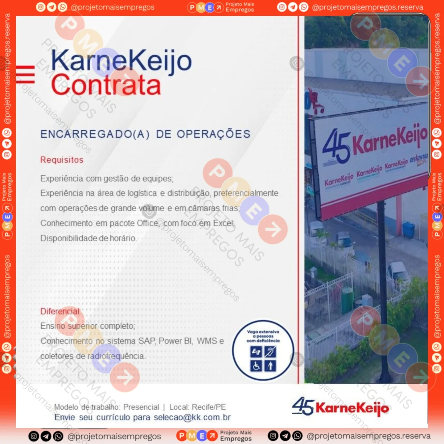 As informações sobre a vaga de emprego, como salário, remuneração, benefícios, requisitos, local de trabalho, forma de candidatura (e-mail ou whatsapp para enviar seu currículo) etc., estarão na imagem abaixo, caso estejam disponíveis.👇