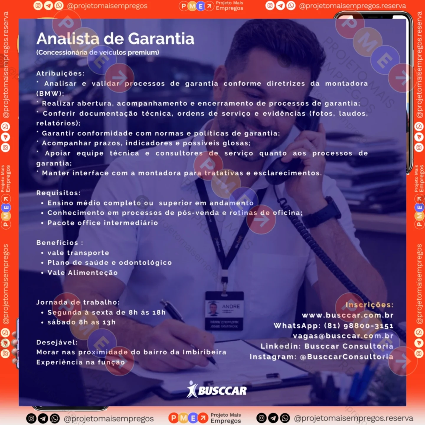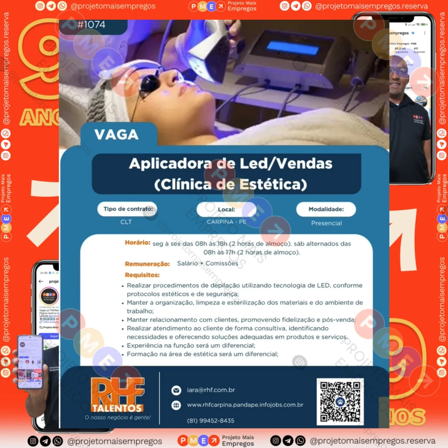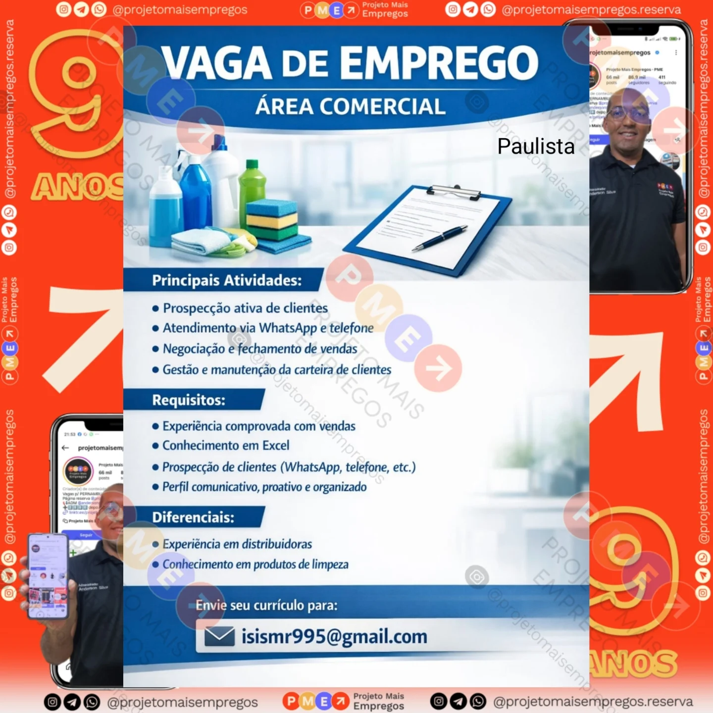 As informações sobre a vaga de emprego, como salário, remuneração, benefícios, requisitos, local de trabalho, forma de candidatura (e-mail ou whatsapp para enviar seu currículo) etc., estarão na imagem acima, caso estejam disponíveis.