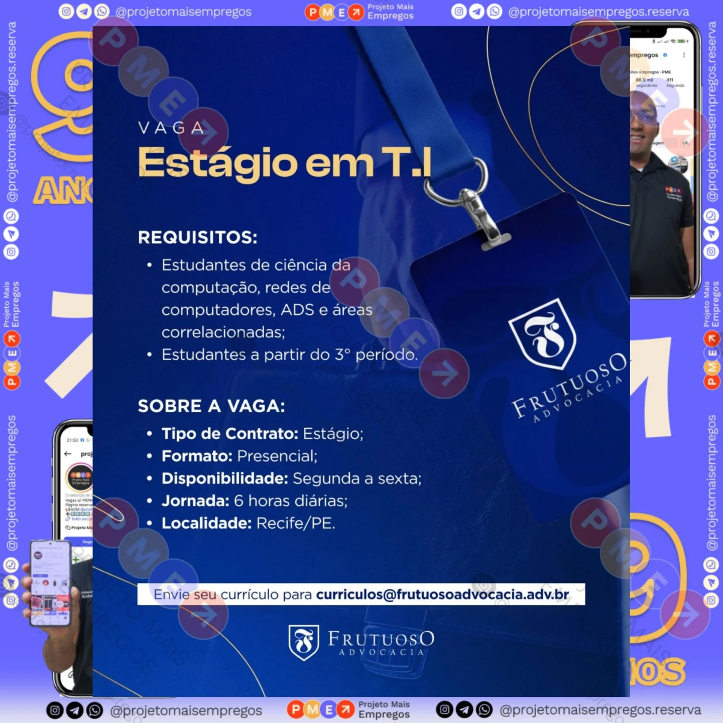 As informações sobre a vaga de emprego, como salário, remuneração, benefícios, requisitos, local de trabalho, forma de candidatura (e-mail ou whatsapp para enviar seu currículo) etc., estarão na imagem abaixo, caso estejam disponíveis.👇