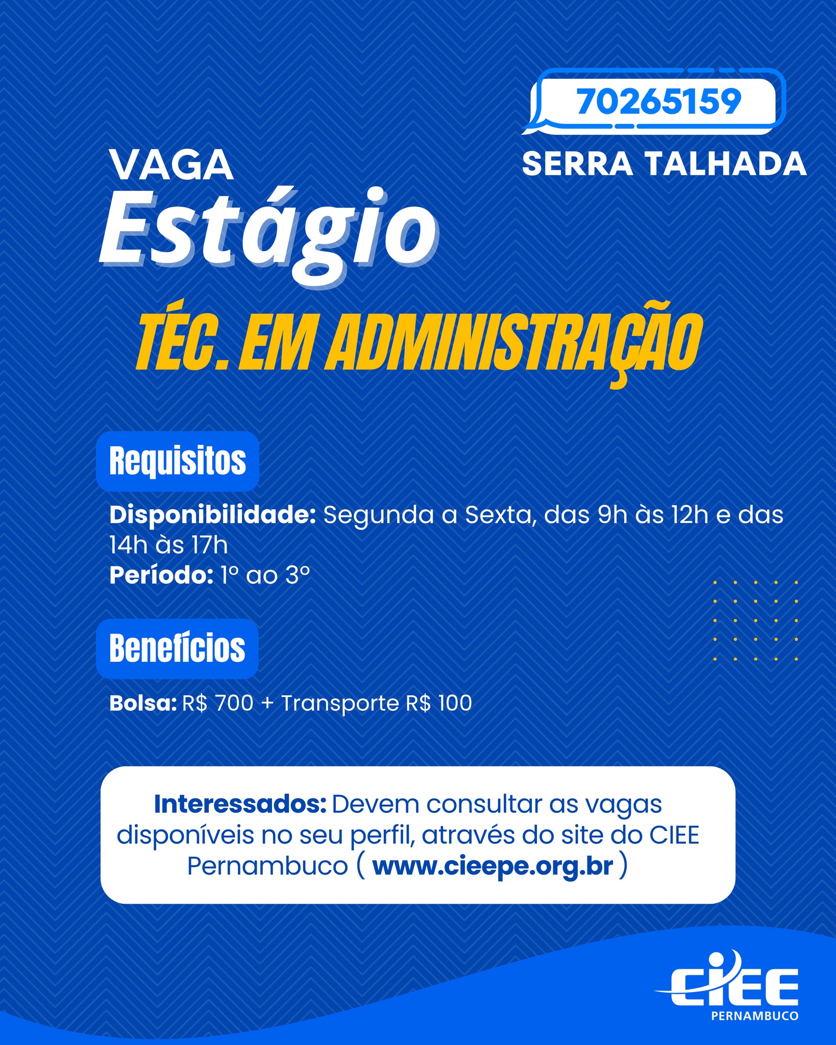 Quantidade de vagas: ESTAGIÁRIO(A): 11
