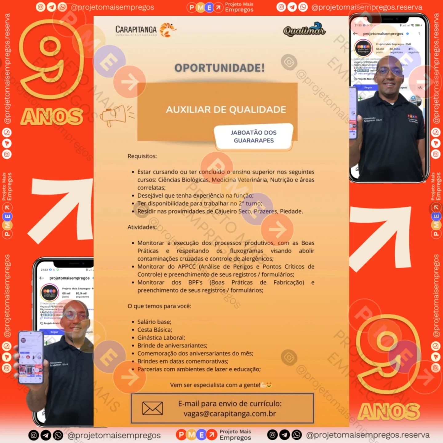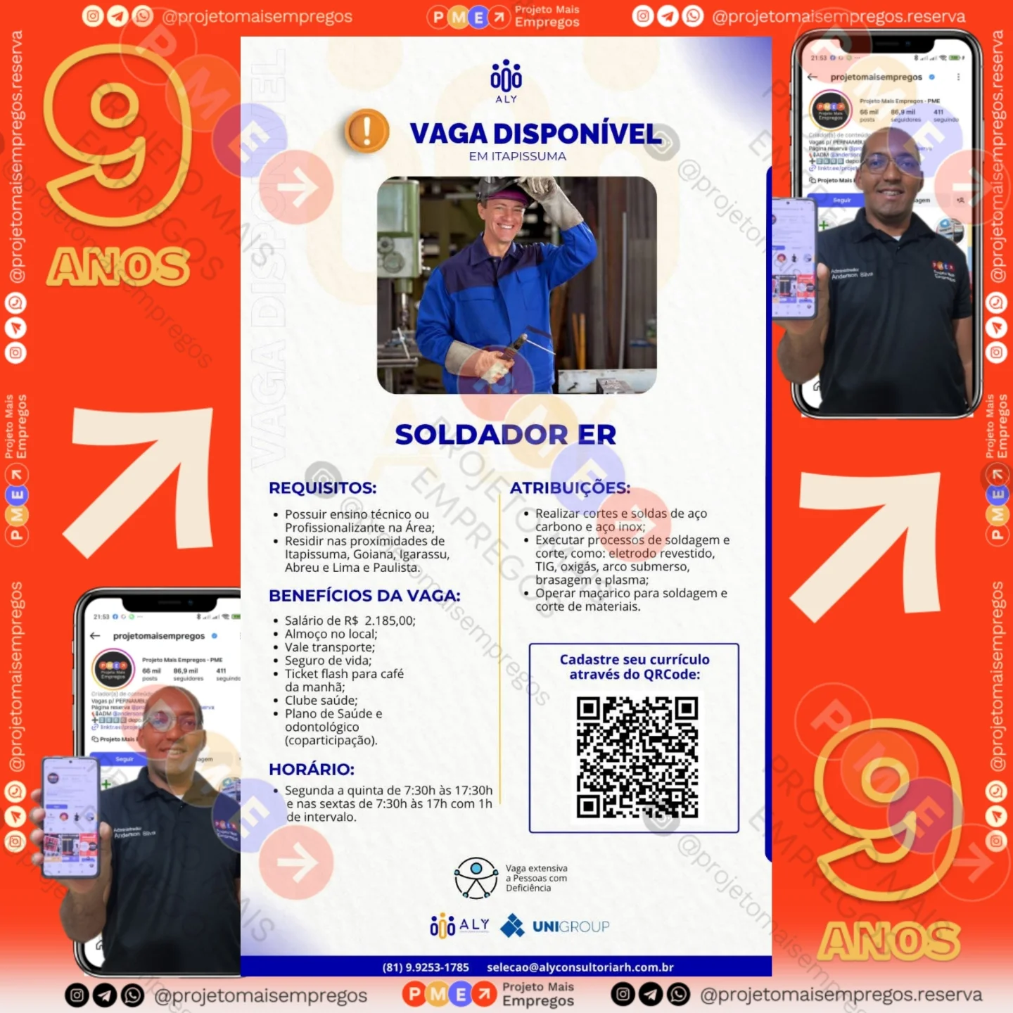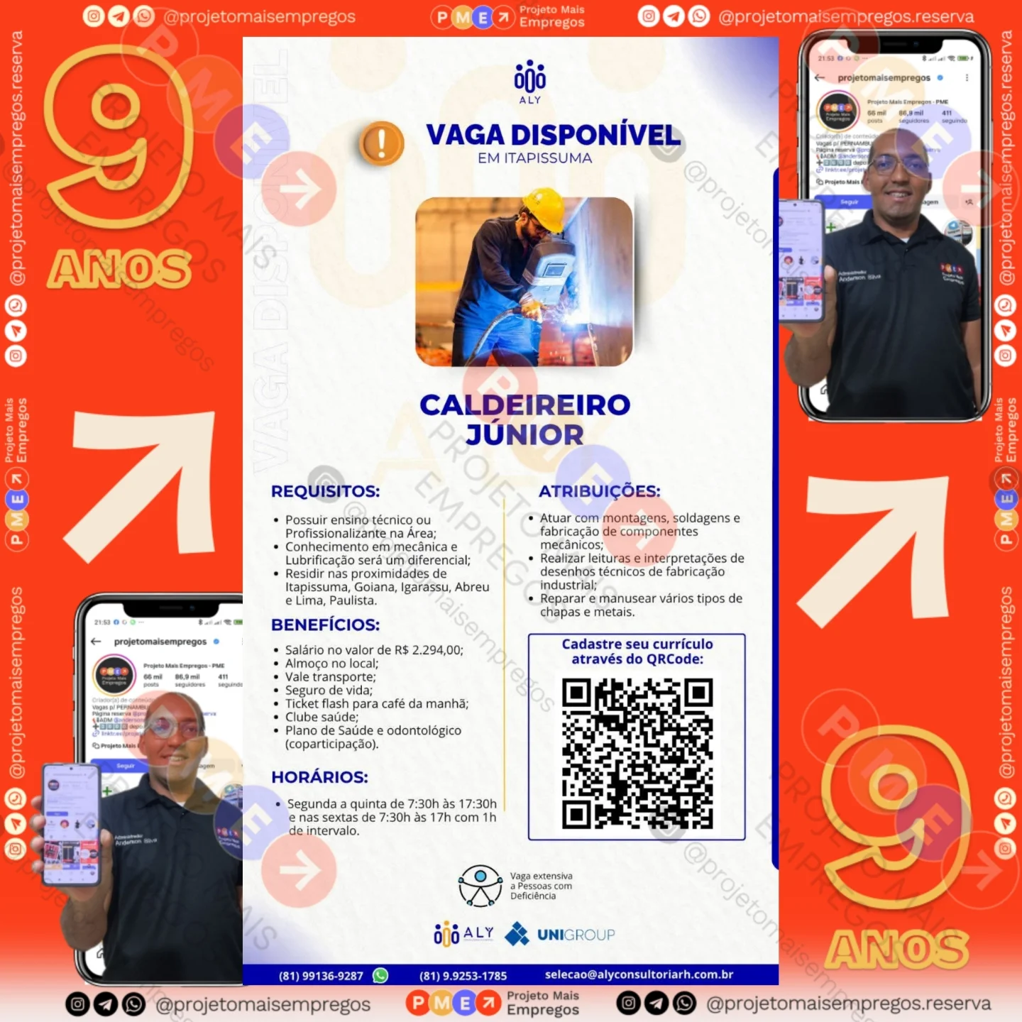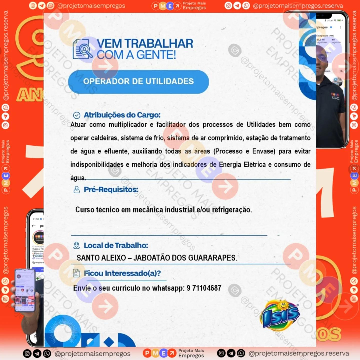 As informações sobre a vaga de emprego, como salário, remuneração, benefícios, requisitos, local de trabalho, forma de candidatura (e-mail ou whatsapp para enviar seu currículo) etc., estarão na imagem acima, caso estejam disponíveis.