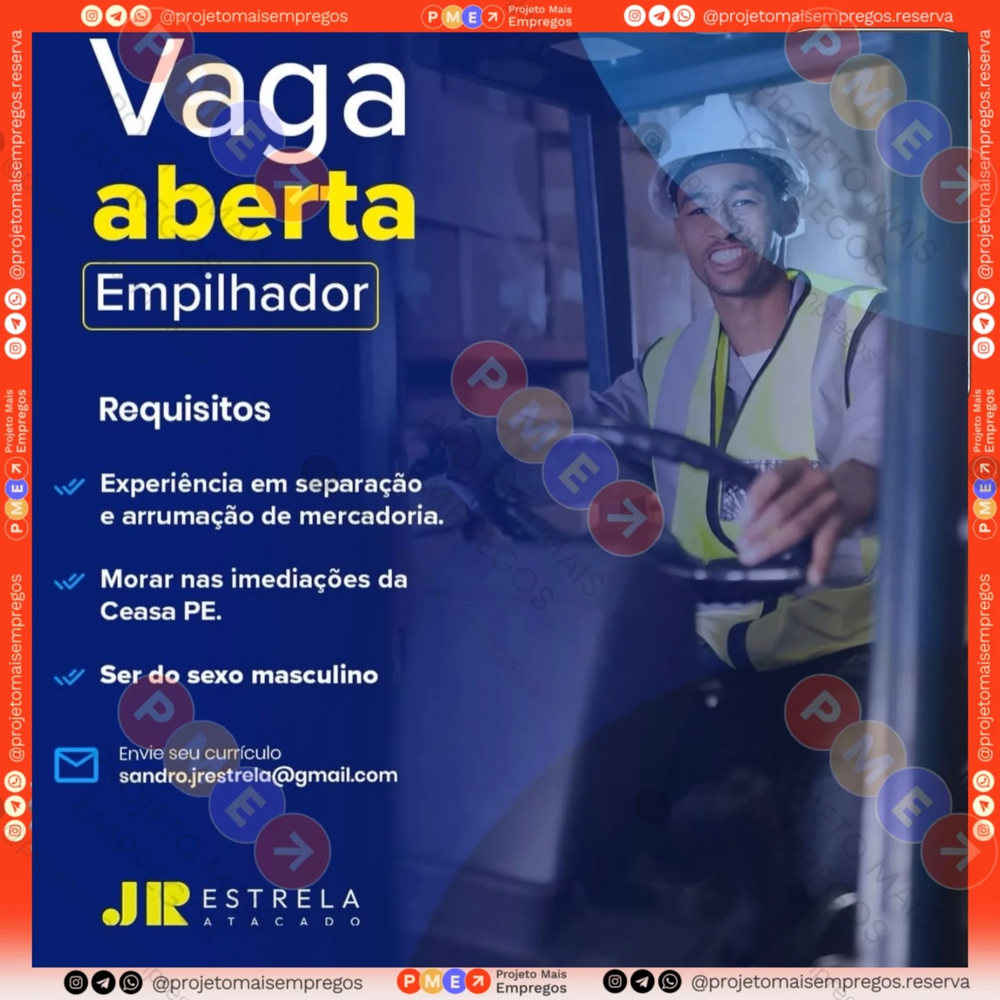 As informações sobre a vaga de emprego, como salário, remuneração, benefícios, requisitos, local de trabalho, forma de candidatura (e-mail ou whatsapp para enviar seu currículo) etc., estarão na imagem abaixo, caso estejam disponíveis.👇