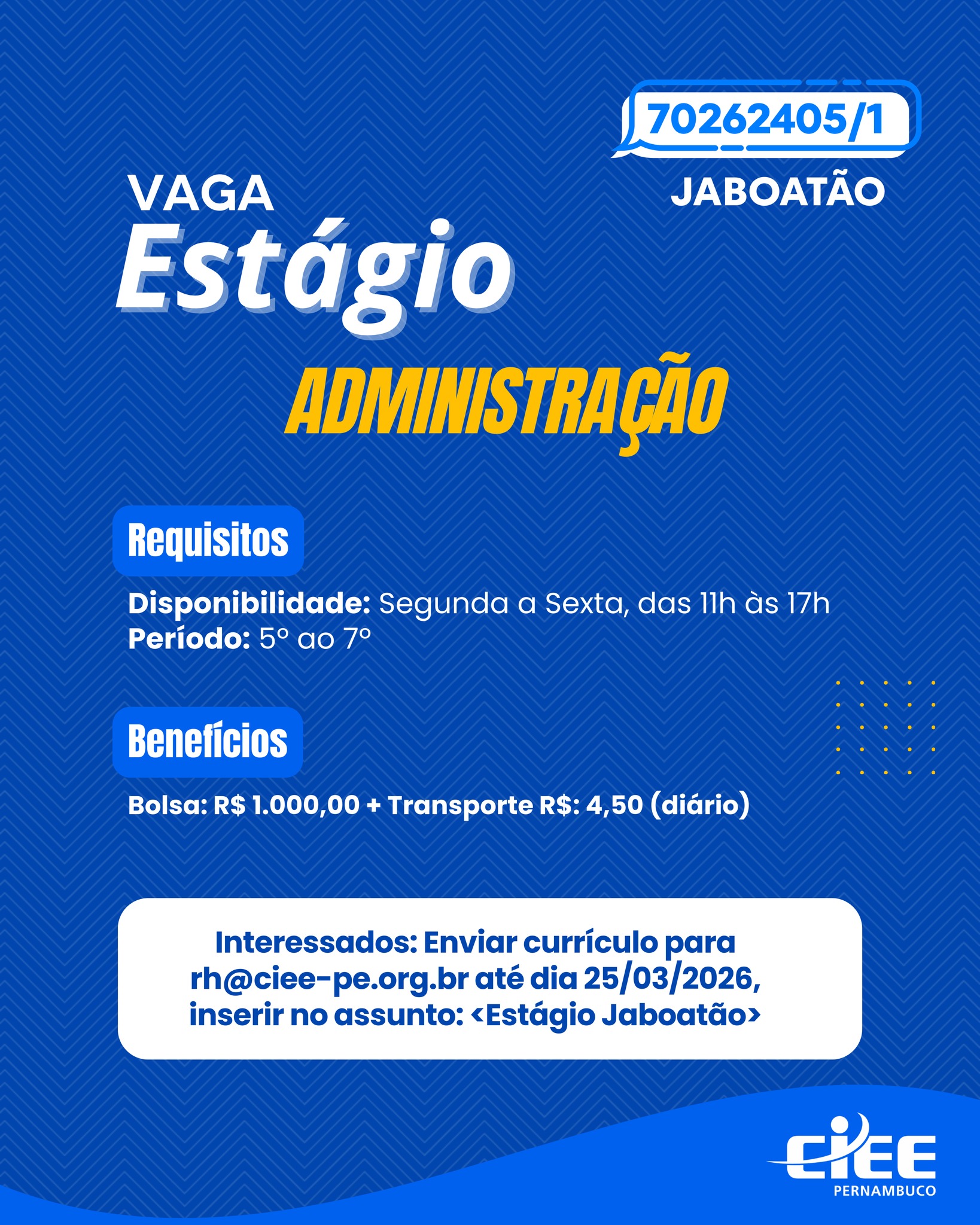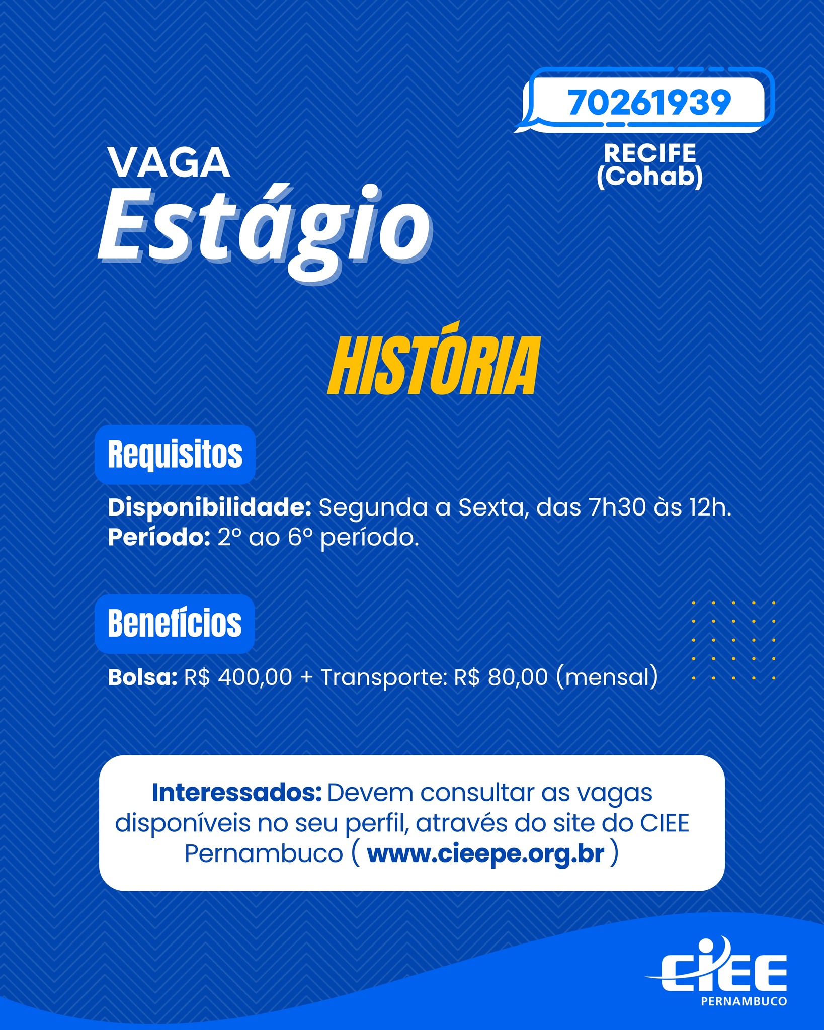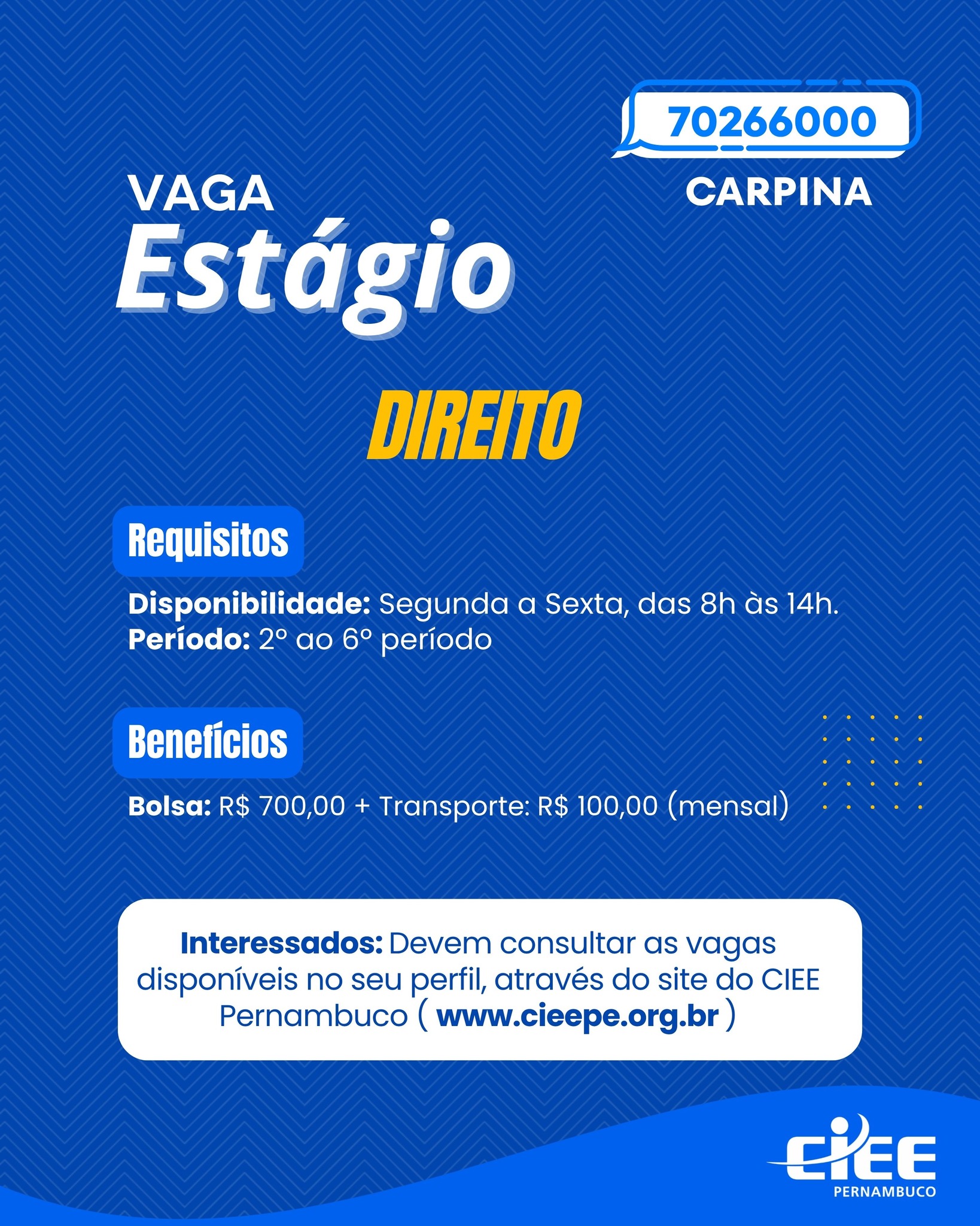 Quantidade de vagas: JOVEM APRENDIZ: 1; ESTAGIÁRIO(A): 10