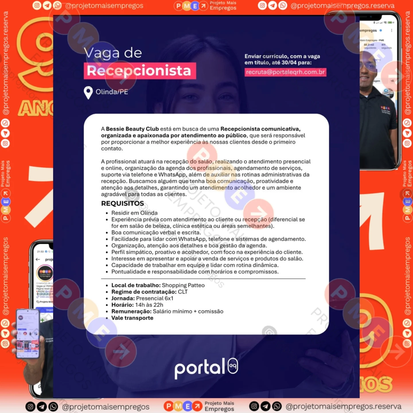 As informações sobre a vaga de emprego, como salário, remuneração, benefícios, requisitos, local de trabalho, forma de candidatura (e-mail ou whatsapp para enviar seu currículo) etc., estarão na imagem acima, caso estejam disponíveis.