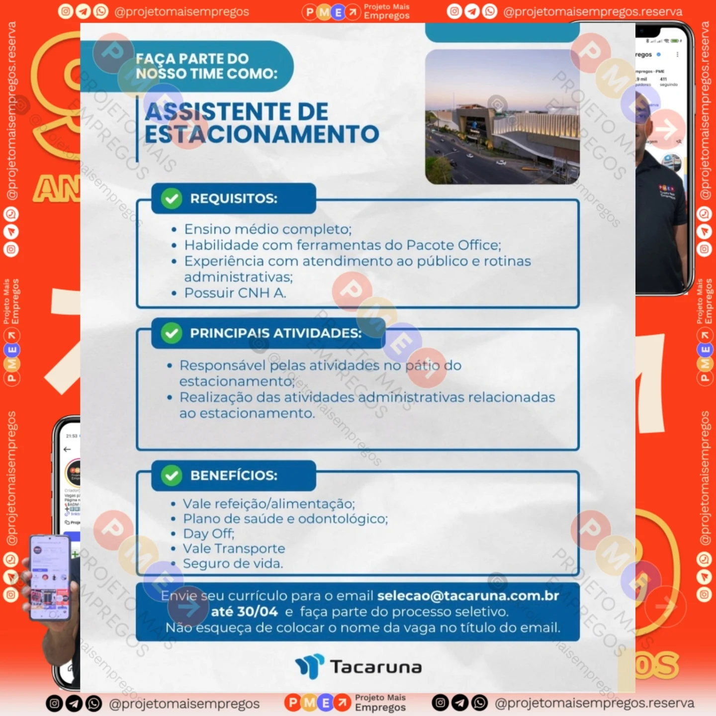 As informações sobre a vaga de emprego, como salário, remuneração, benefícios, requisitos, local de trabalho, forma de candidatura (e-mail ou whatsapp para enviar seu currículo) etc., estarão na imagem abaixo, caso estejam disponíveis.👇