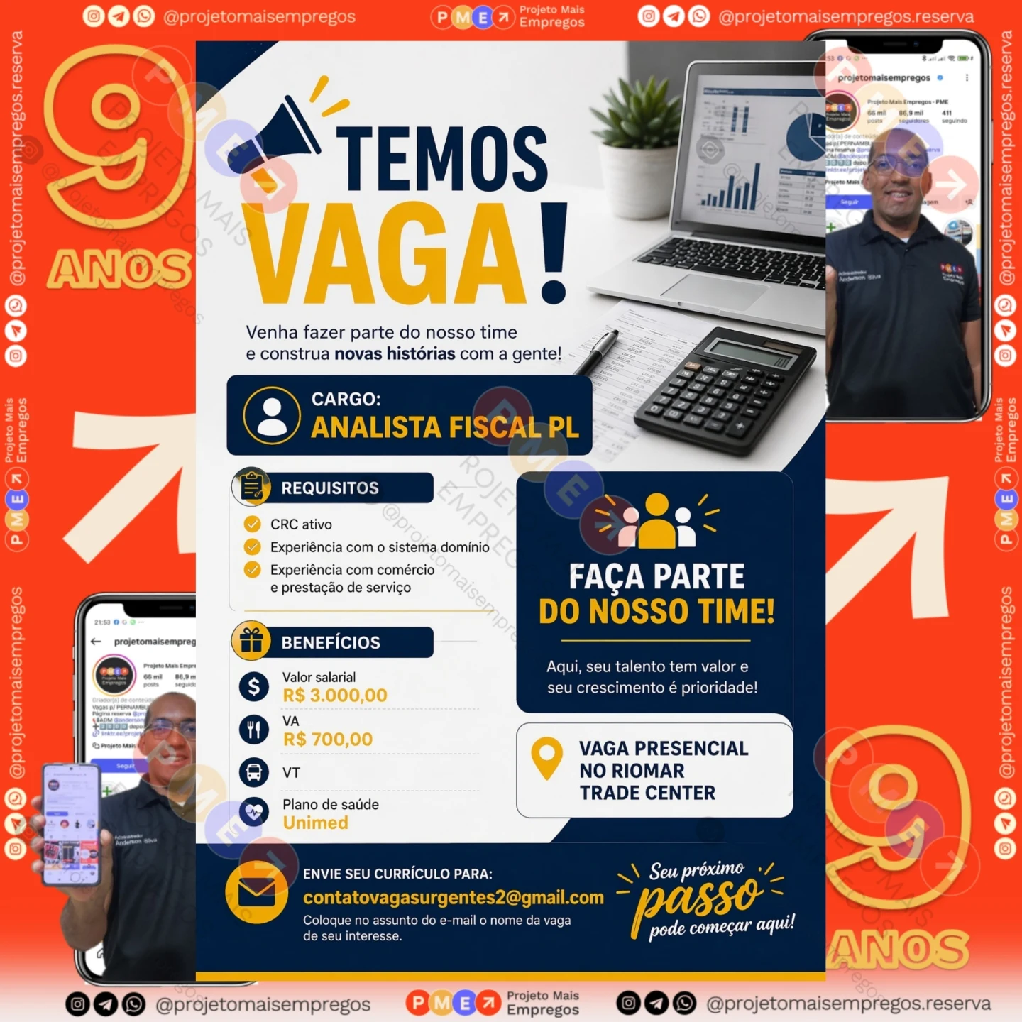 As informações sobre a vaga de emprego, como salário, remuneração, benefícios, requisitos, local de trabalho, forma de candidatura (e-mail ou whatsapp para enviar seu currículo) etc., estarão na imagem acima, caso estejam disponíveis.