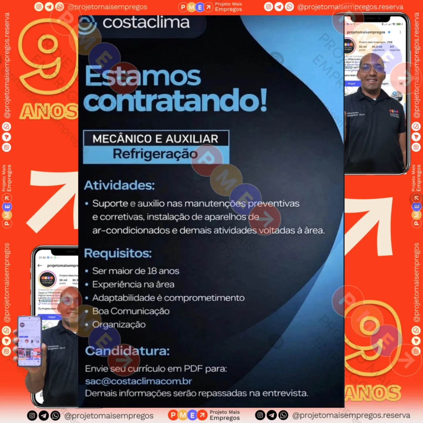 As informações sobre a vaga de emprego, como salário, remuneração, benefícios, requisitos, local de trabalho, forma de candidatura (e-mail ou whatsapp para enviar seu currículo) etc., estarão na imagem acima, caso estejam disponíveis.