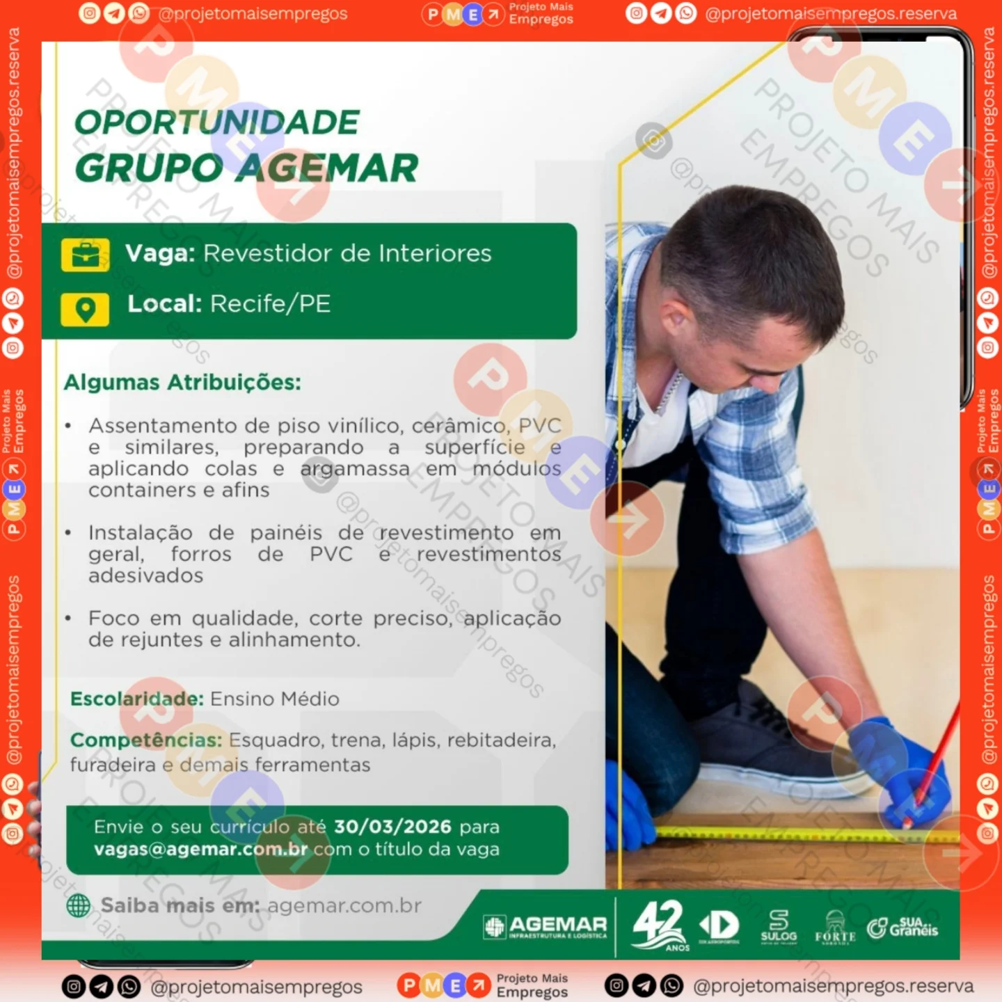 12 Vagas de emprego para Auxiliar De Logística, Auxiliar De Produção, Atendente, Auxiliar De Depósito / Almoxarifado, Pedreiro / Servente em Pernambuco nesta sexta-feira (27/03)