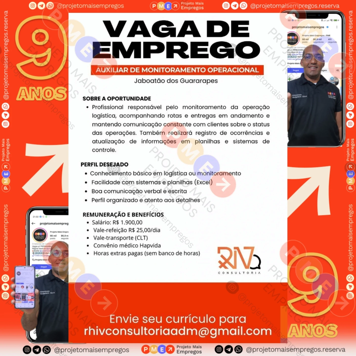 As informações sobre a vaga de emprego, como salário, remuneração, benefícios, requisitos, local de trabalho, forma de candidatura (e-mail ou whatsapp para enviar seu currículo) etc., estarão na imagem acima, caso estejam disponíveis.