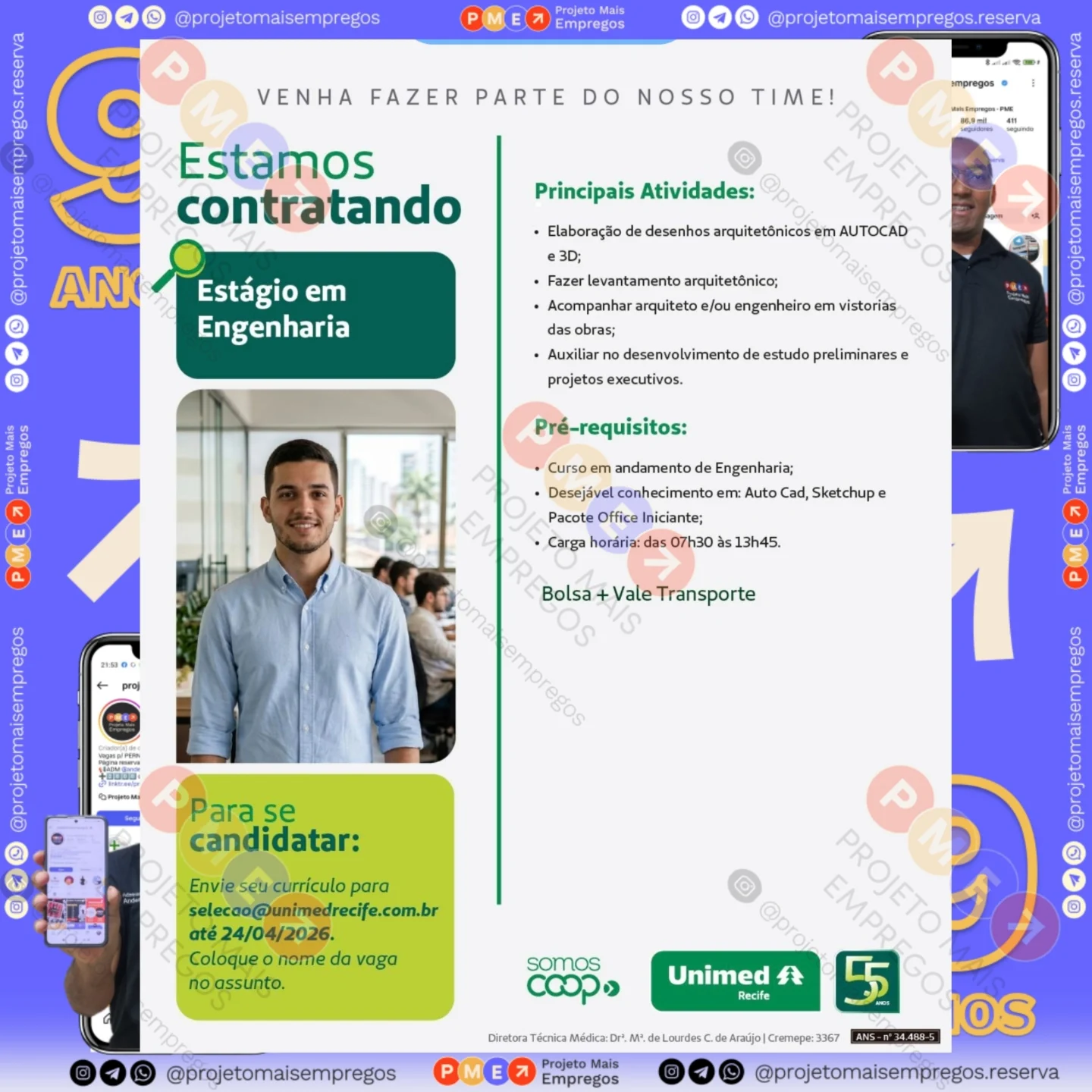 As informações sobre a vaga de emprego, como salário, remuneração, benefícios, requisitos, local de trabalho, forma de candidatura (e-mail ou whatsapp para enviar seu currículo) etc., estarão na imagem acima, caso estejam disponíveis.