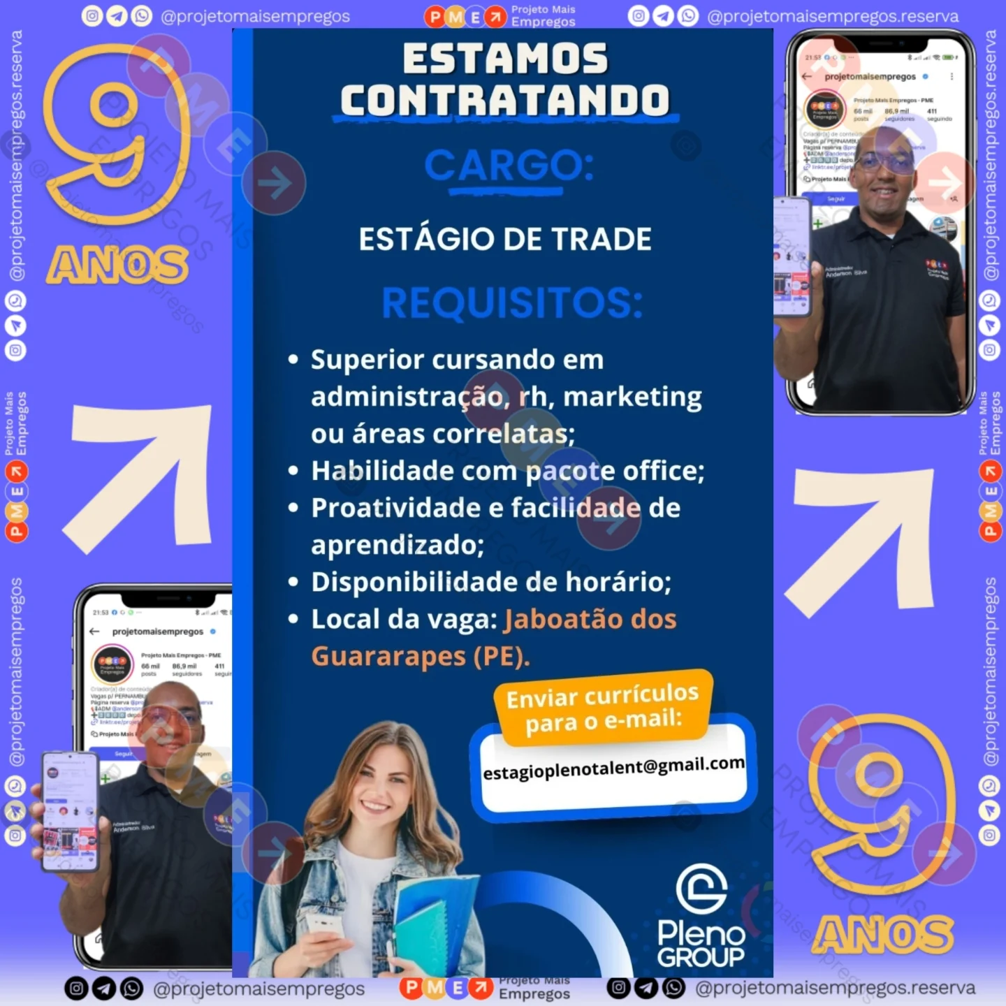 As informações sobre a vaga de emprego, como salário, remuneração, benefícios, requisitos, local de trabalho, forma de candidatura (e-mail ou whatsapp para enviar seu currículo) etc., estarão na imagem abaixo, caso estejam disponíveis.👇