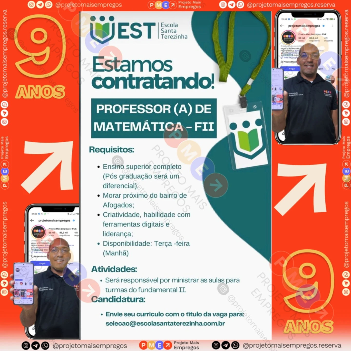 As informações sobre a vaga de emprego, como salário, remuneração, benefícios, requisitos, local de trabalho, forma de candidatura (e-mail ou whatsapp para enviar seu currículo) etc., estarão na imagem acima, caso estejam disponíveis.