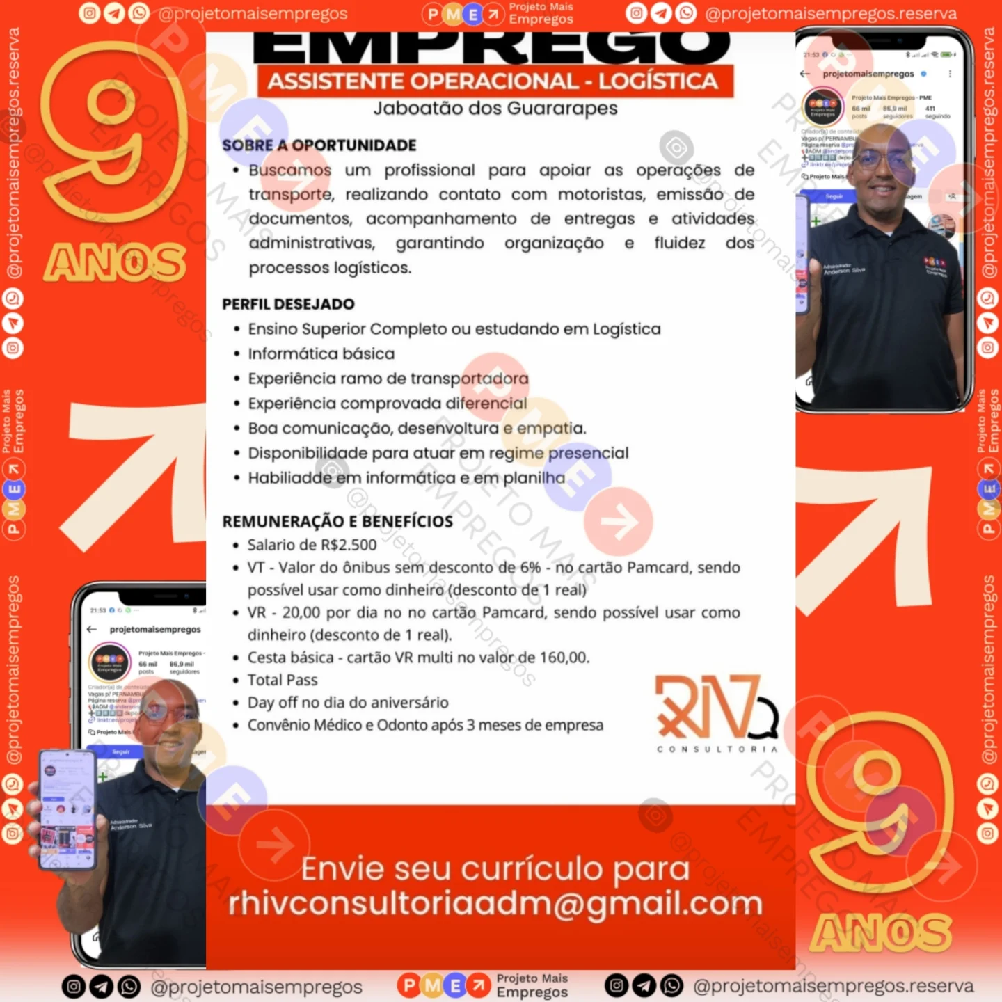 As informações sobre a vaga de emprego, como salário, remuneração, benefícios, requisitos, local de trabalho, forma de candidatura (e-mail ou whatsapp para enviar seu currículo) etc., estarão na imagem abaixo, caso estejam disponíveis.👇