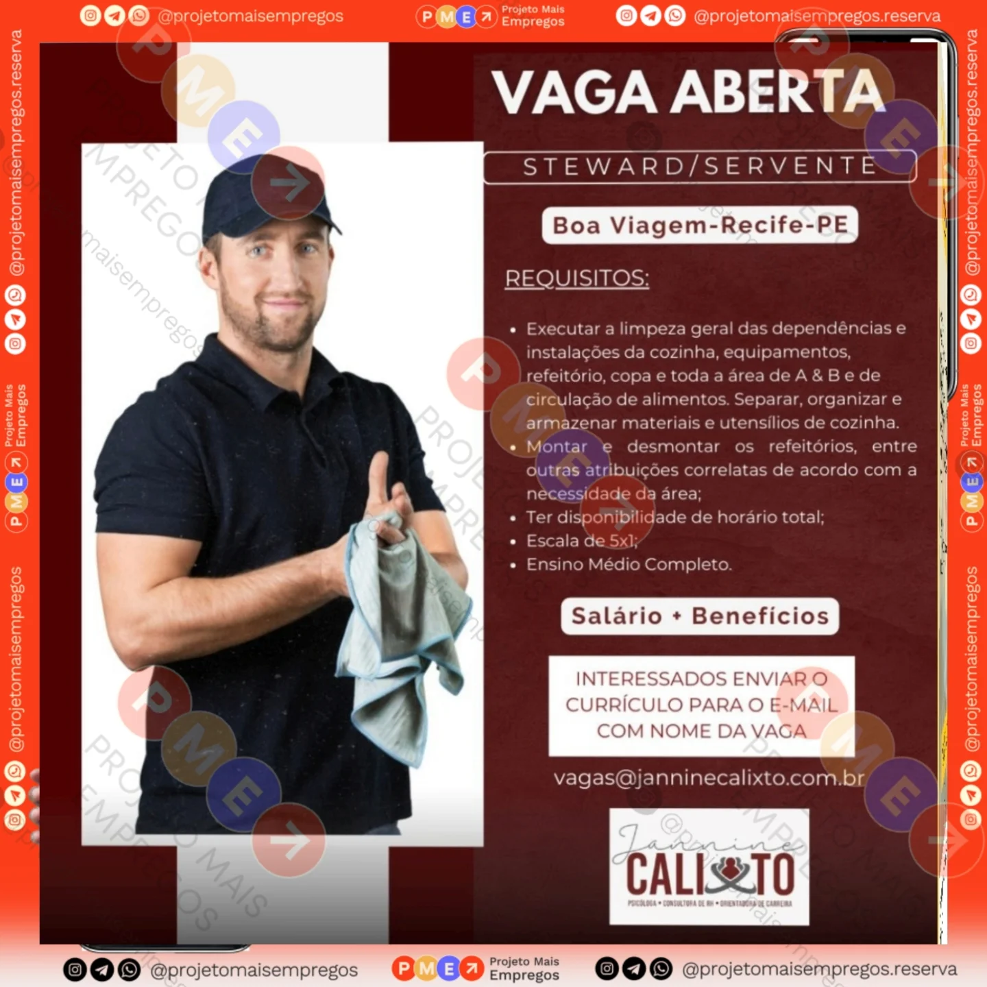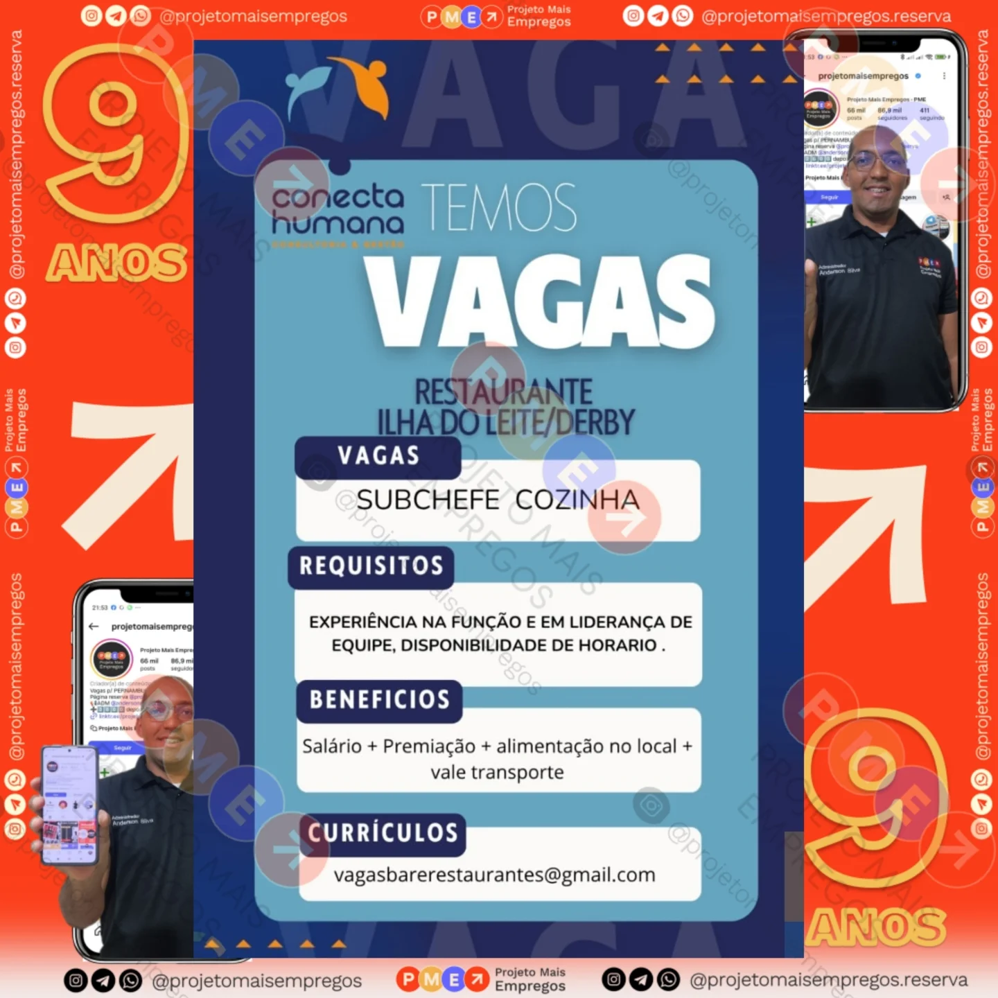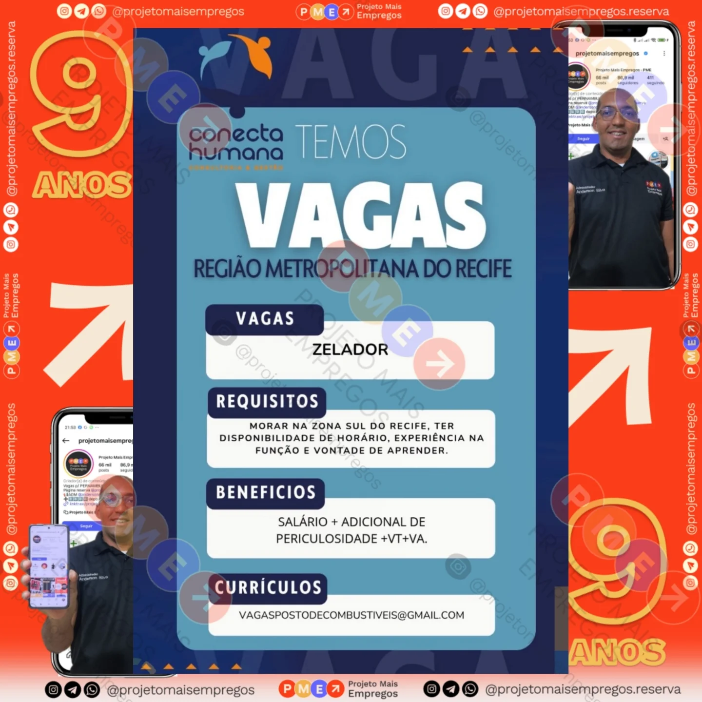 As informações sobre a vaga de emprego, como salário, remuneração, benefícios, requisitos, local de trabalho, forma de candidatura (e-mail ou whatsapp para enviar seu currículo) etc., estarão na imagem acima, caso estejam disponíveis.