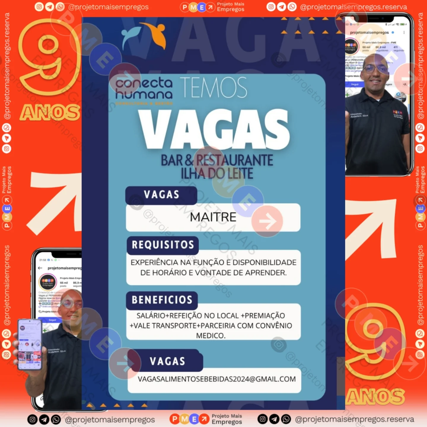 As informações sobre a vaga de emprego, como salário, remuneração, benefícios, requisitos, local de trabalho, forma de candidatura (e-mail ou whatsapp para enviar seu currículo) etc., estarão na imagem acima, caso estejam disponíveis.
