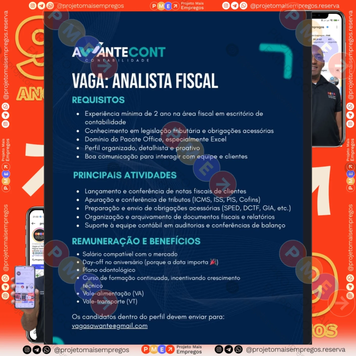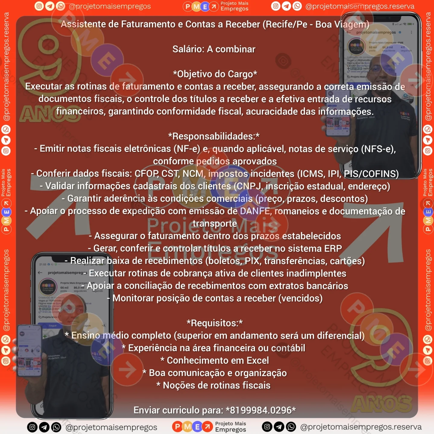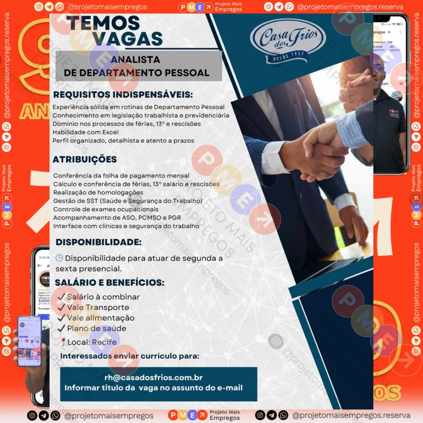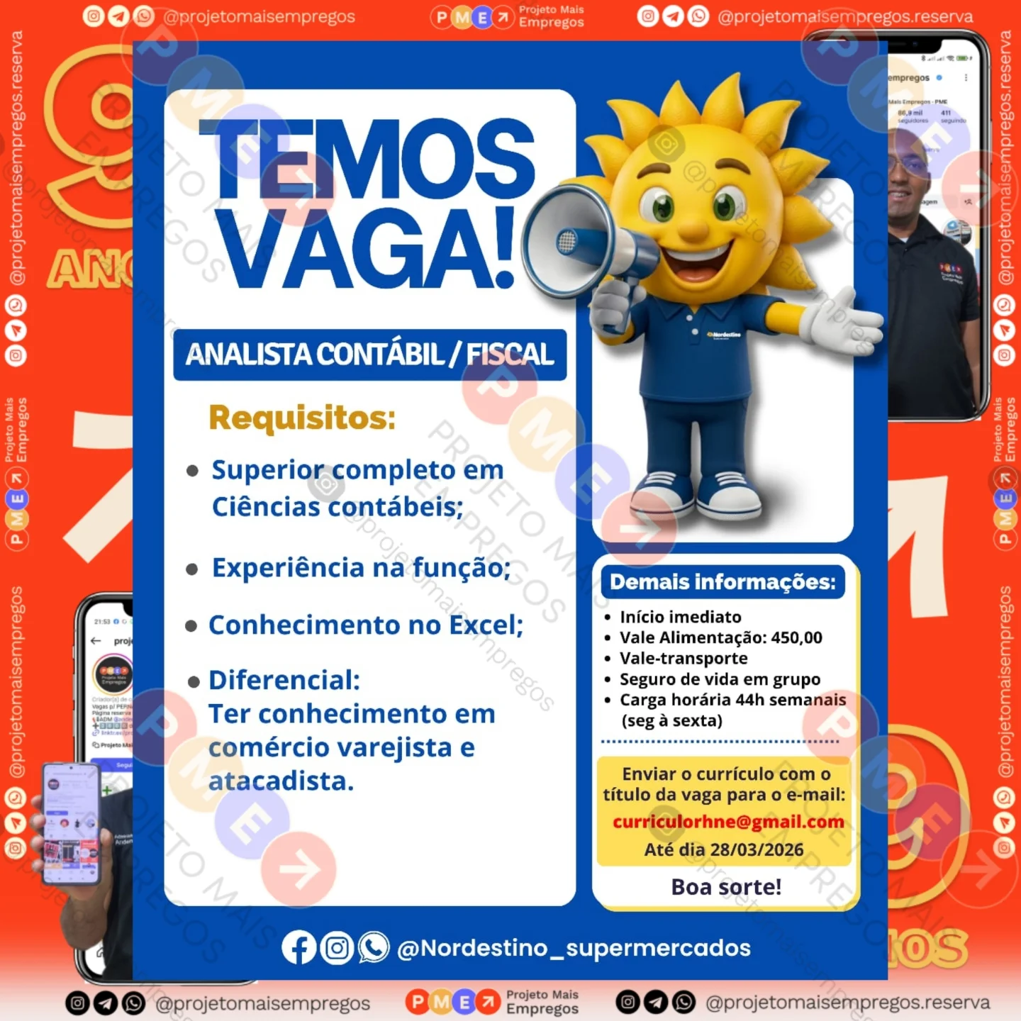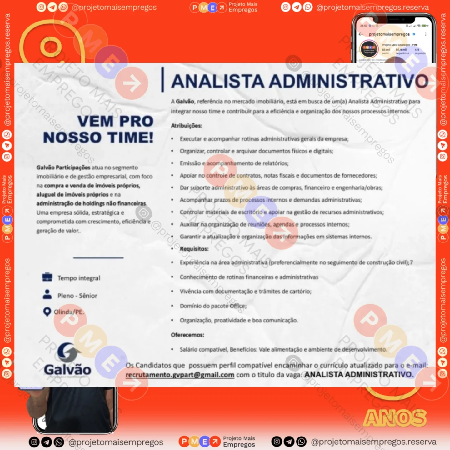 As informações sobre a vaga de emprego, como salário, remuneração, benefícios, requisitos, local de trabalho, forma de candidatura (e-mail ou whatsapp para enviar seu currículo) etc., estarão na imagem acima, caso estejam disponíveis.
