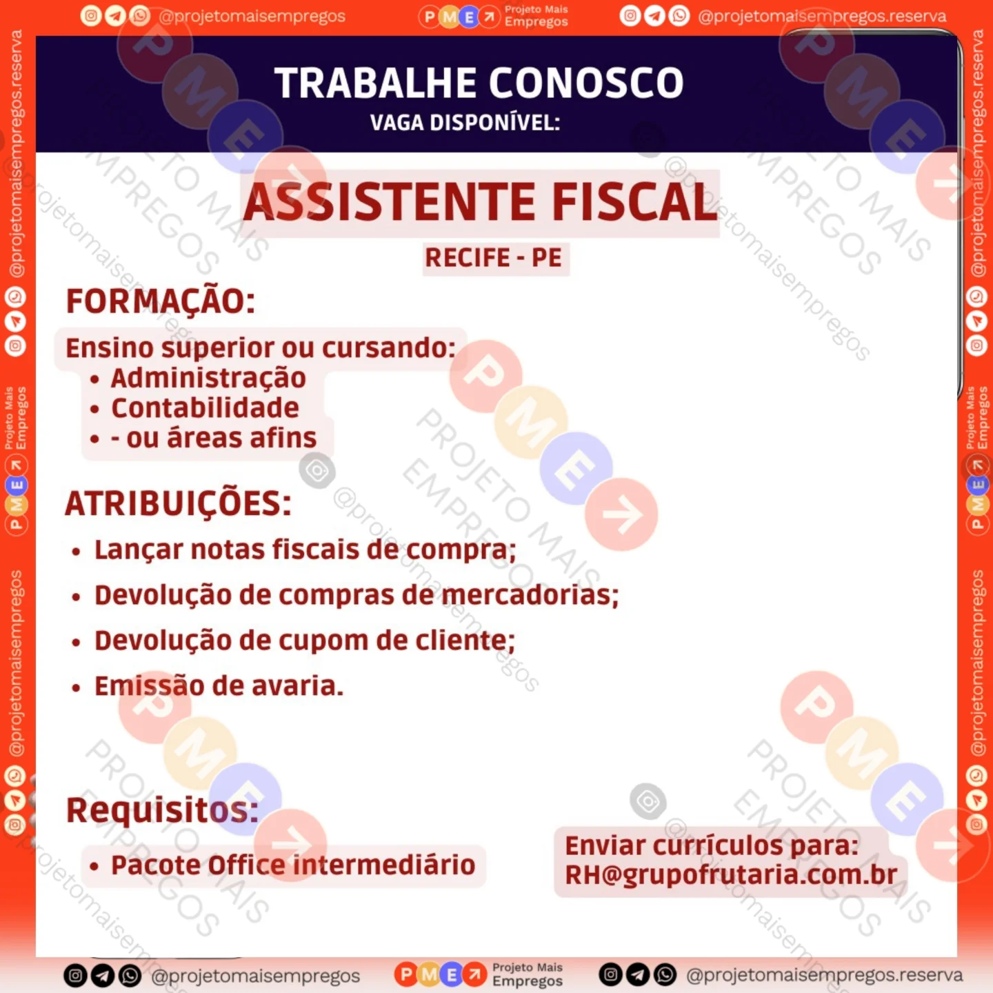 Link do post: https://www.instagram.com/projetomaisempregos/p/DWRoKWFlSTp/
