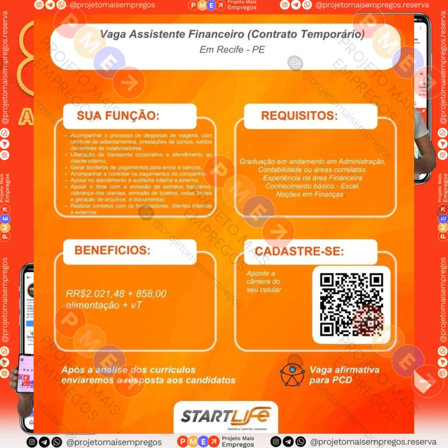 Benefícios: AUXILIAR / ASSISTENTE ADMINISTRATIVO: convênios, day off de aniversário, plano de saúde, plano odontológico, seguro de vida, vale-alimentação, vale-transporte; ANALISTA DE RH (RECURSOS HUMANOS): diversos benefícios; ASSISTENTE FINANCEIRO: vale-alimentação, vale-transporte; AUXILIAR / ASSISTENTE DE RH (RECURSOS HUMANOS): vale-alimentação