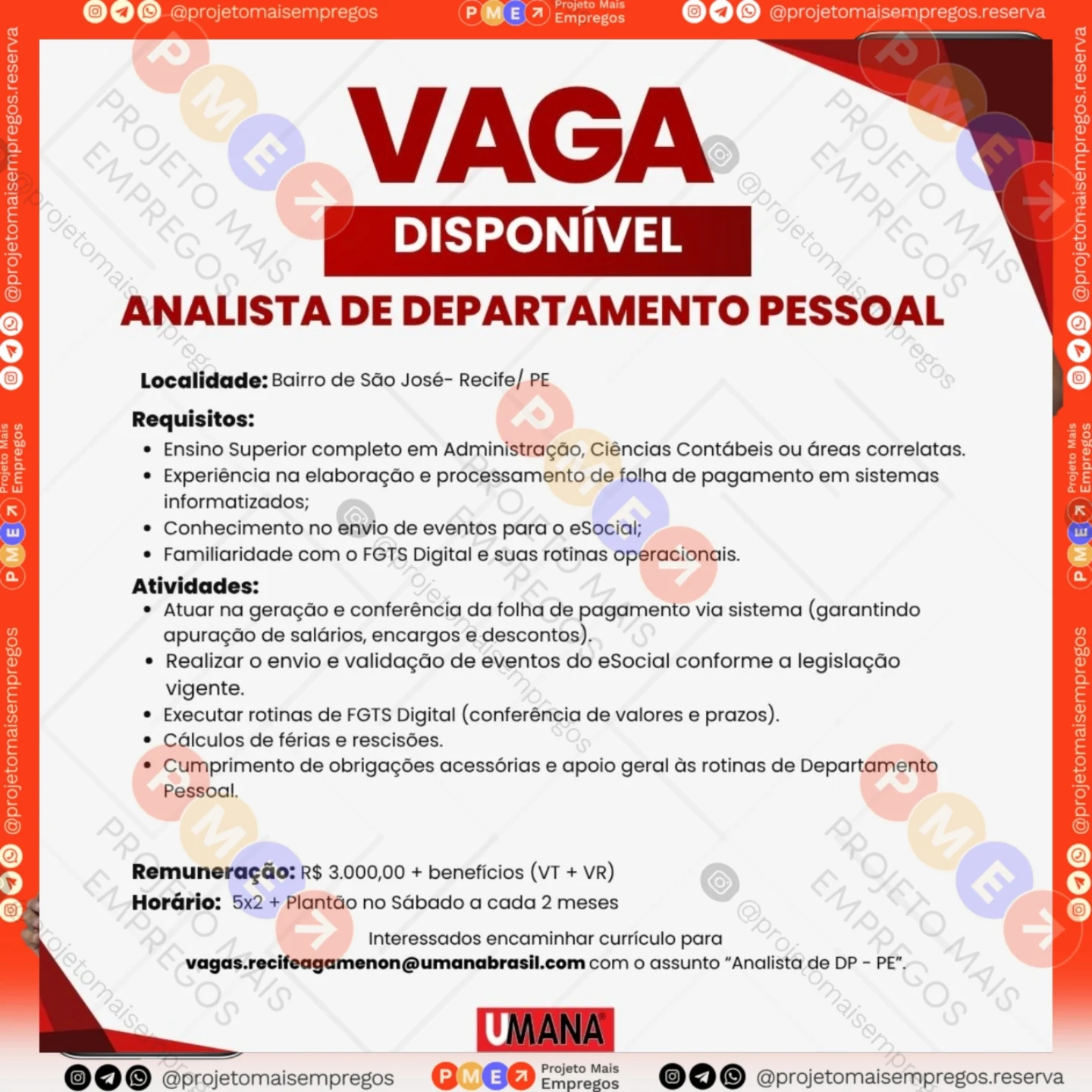 As informações sobre a vaga de emprego, como salário, remuneração, benefícios, requisitos, local de trabalho, forma de candidatura (e-mail ou whatsapp para enviar seu currículo) etc., estarão na imagem acima, caso estejam disponíveis.