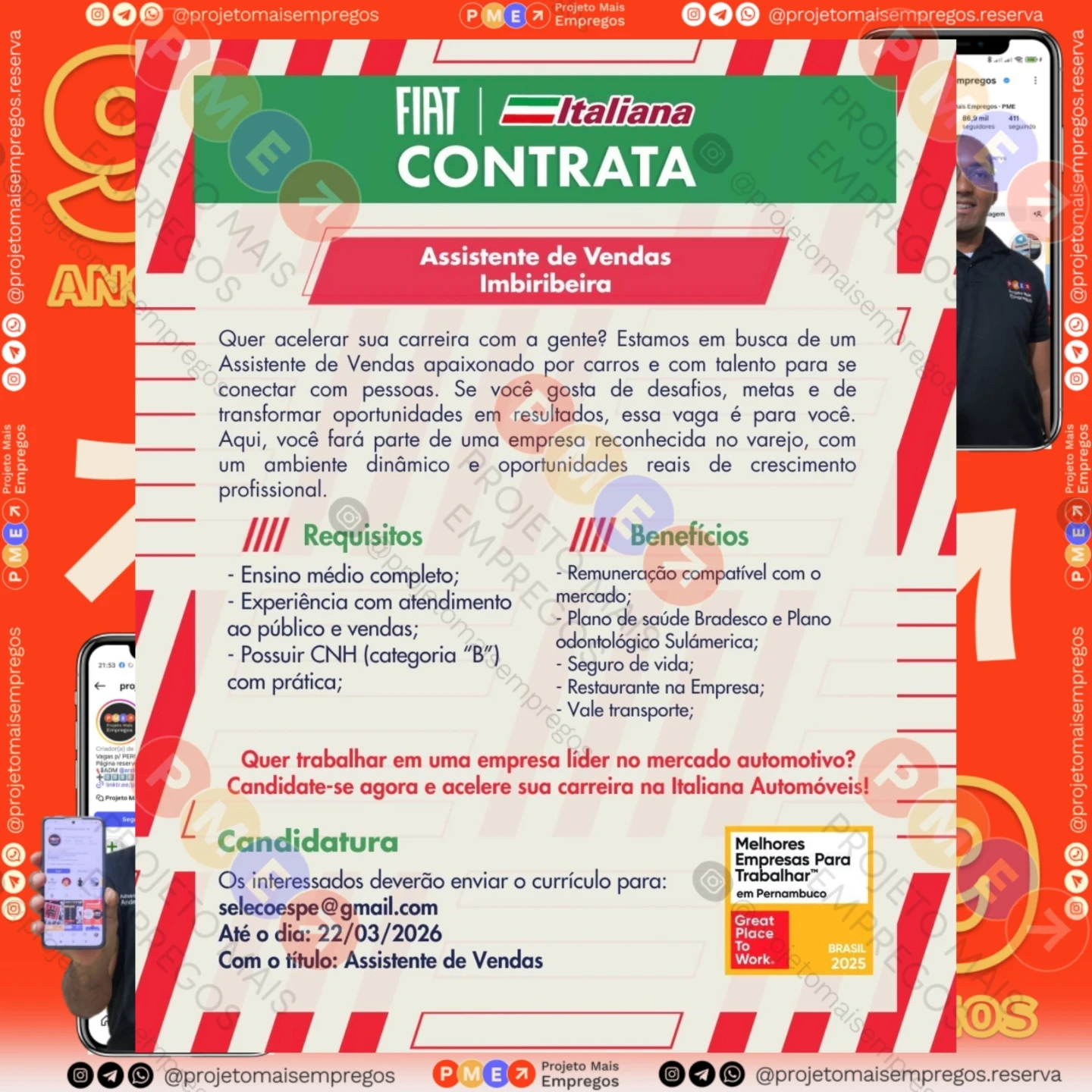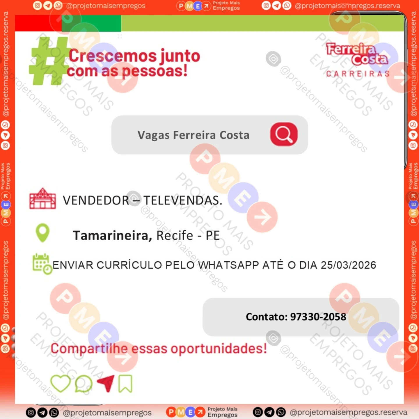 Link do post: https://www.instagram.com/projetomaisempregos/p/DWNNSshFeaX/