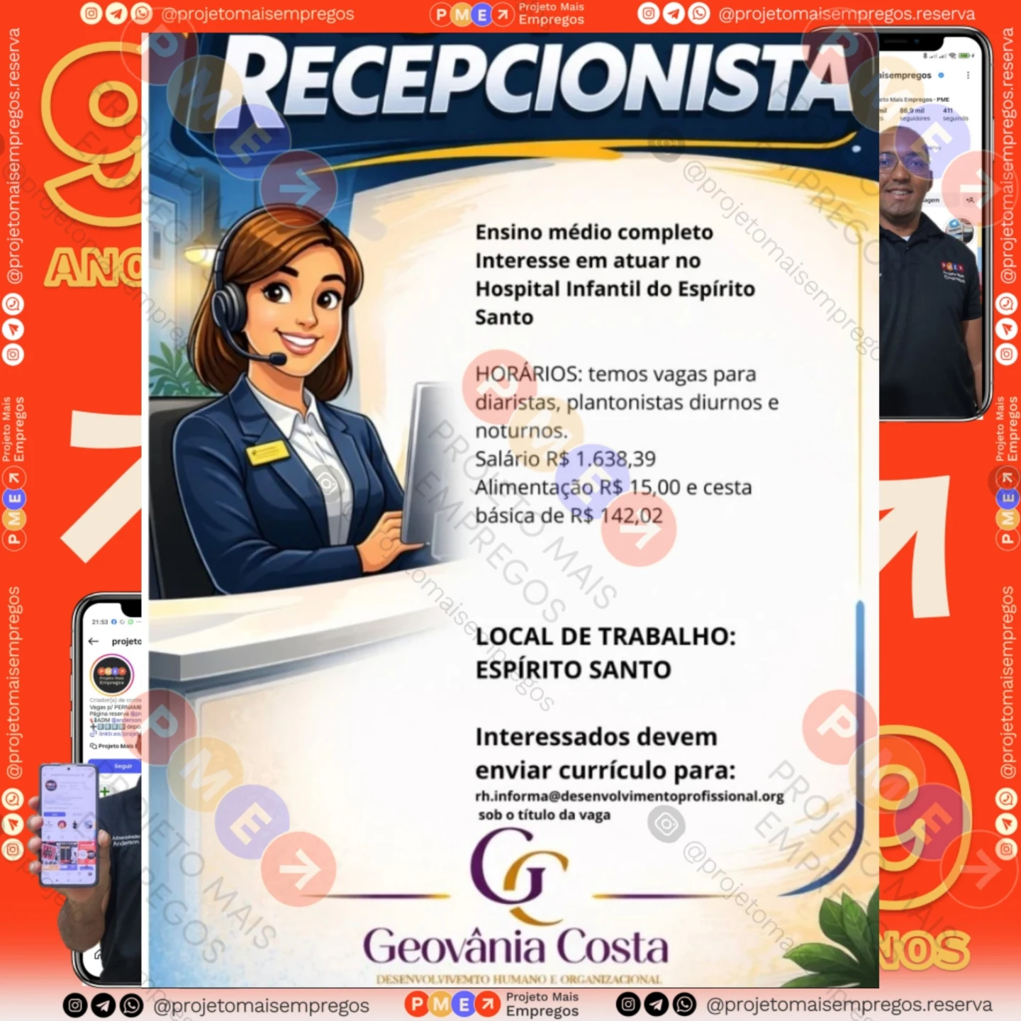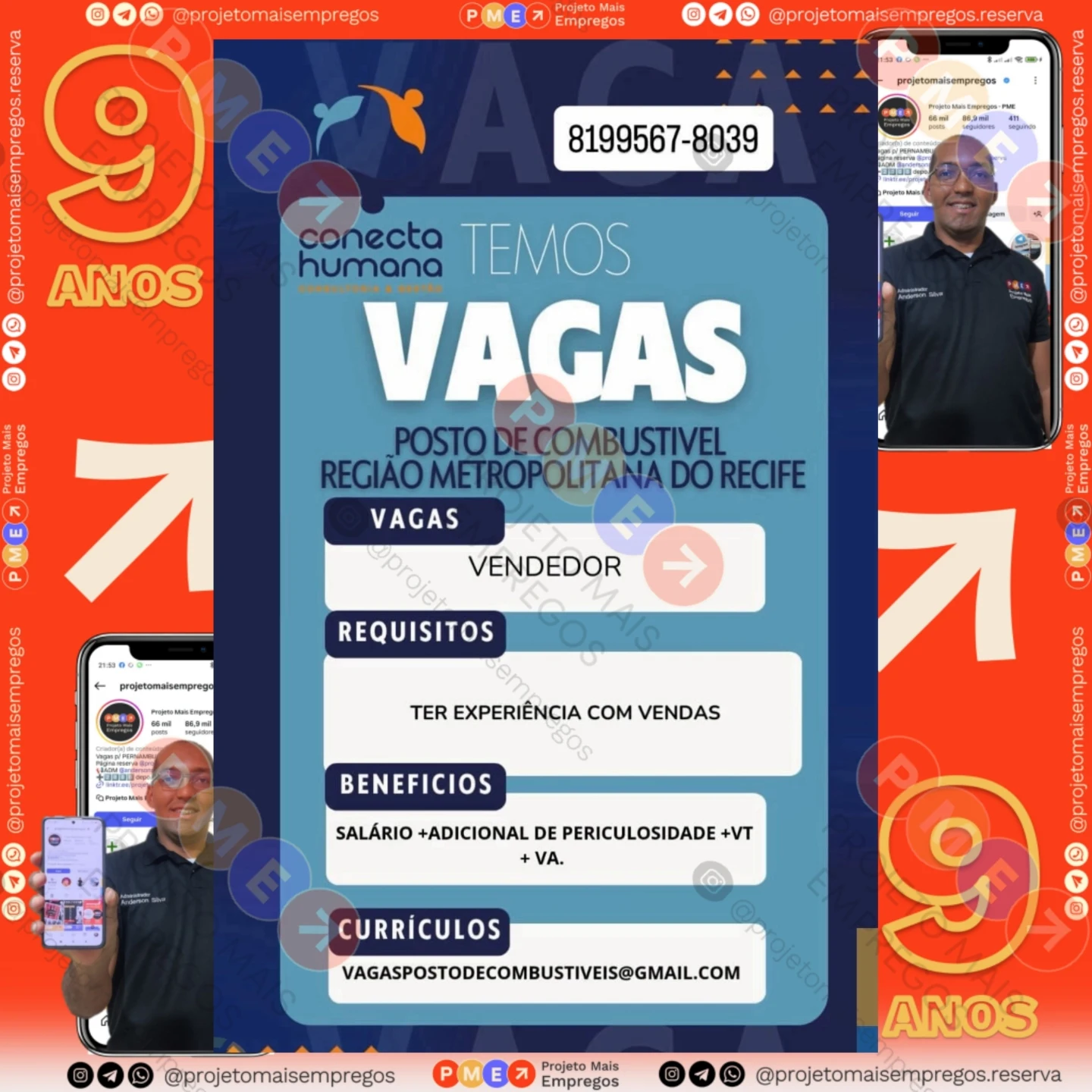 As informações sobre a vaga de emprego, como salário, remuneração, benefícios, requisitos, local de trabalho, forma de candidatura (e-mail ou whatsapp para enviar seu currículo) etc., estarão na imagem acima, caso estejam disponíveis.