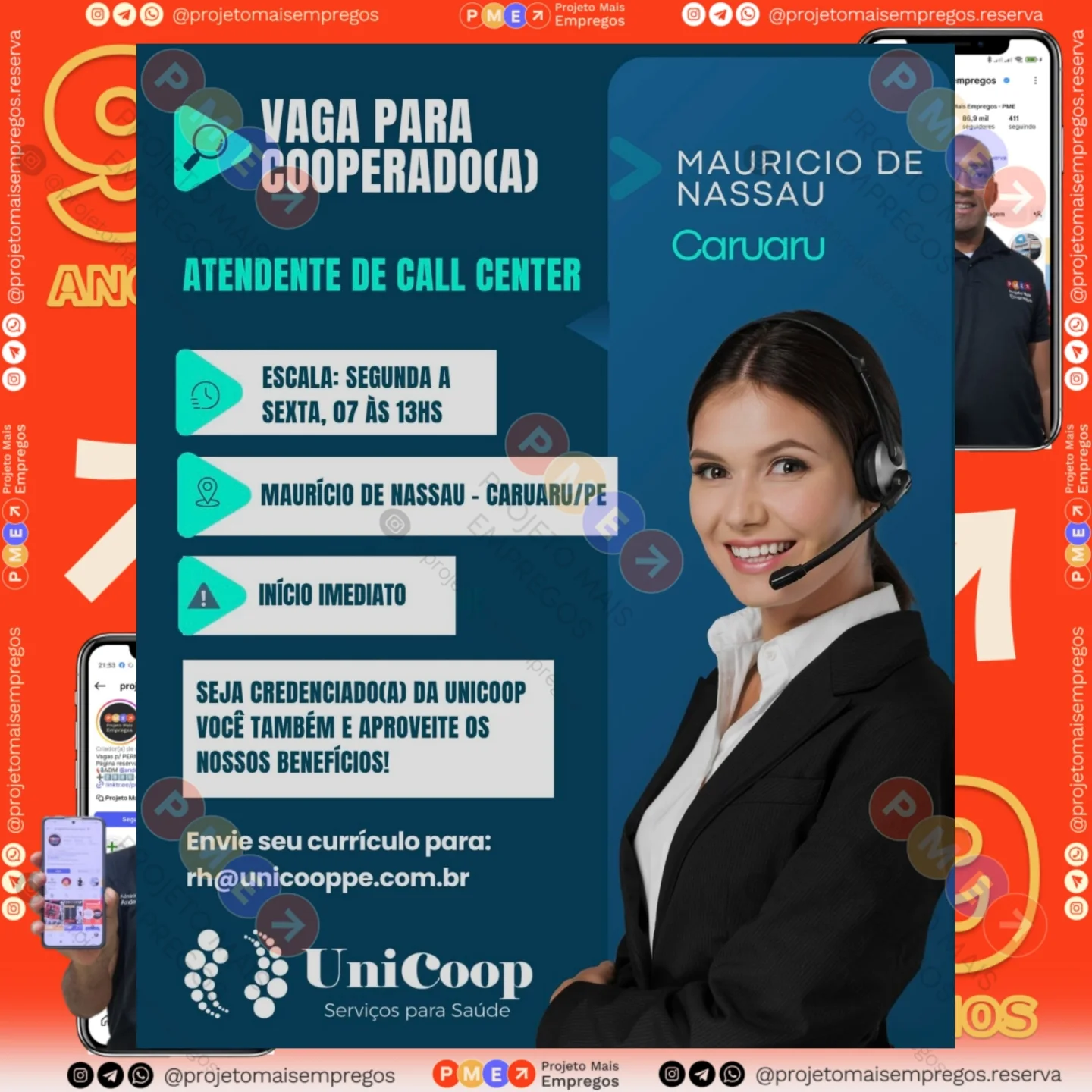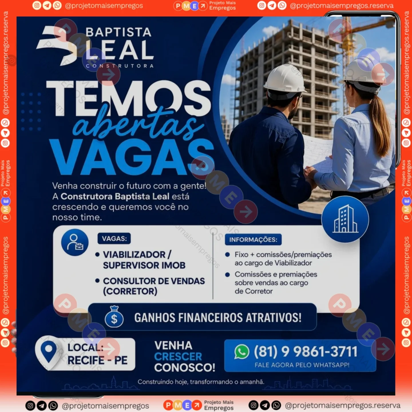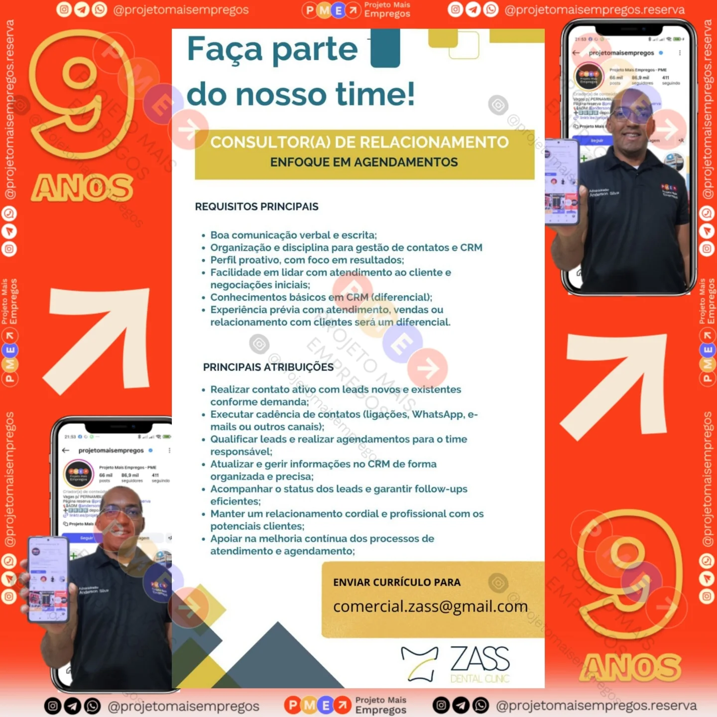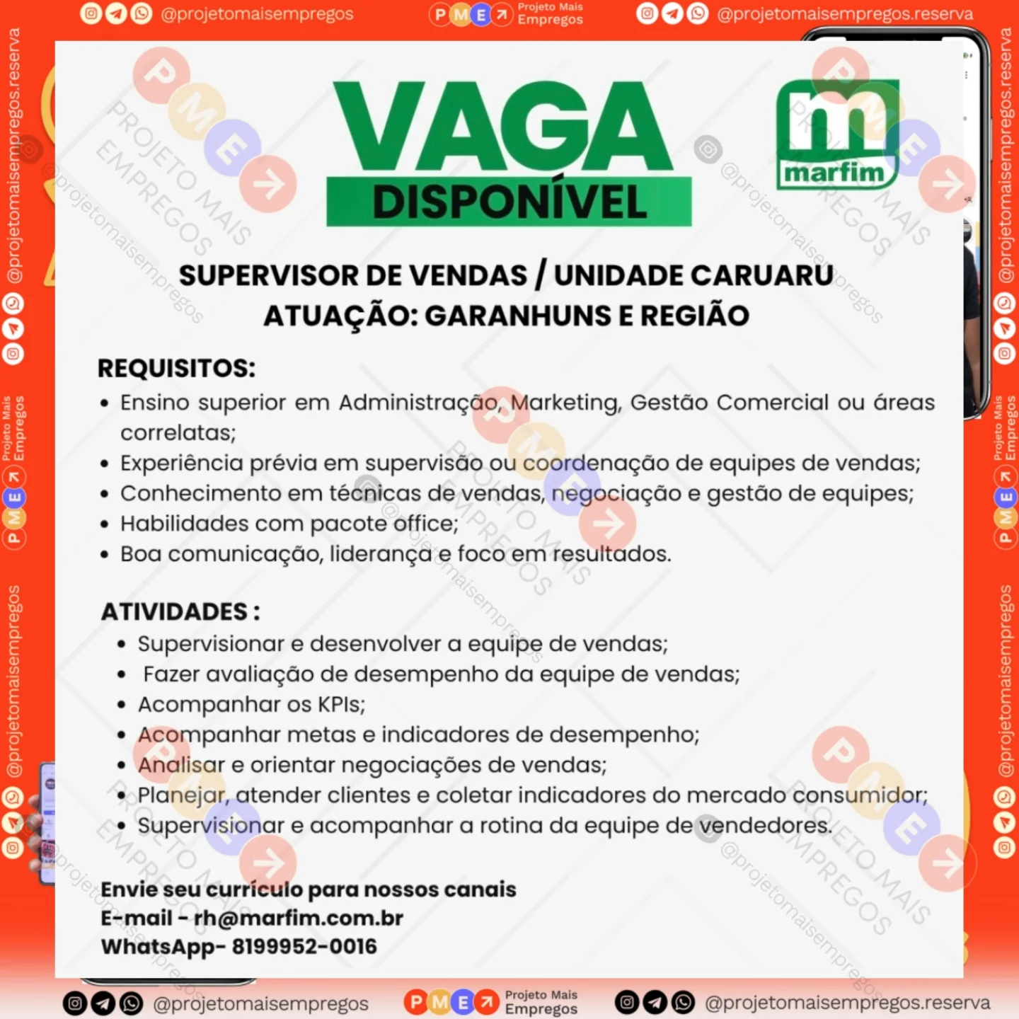 As informações sobre a vaga de emprego, como salário, remuneração, benefícios, requisitos, local de trabalho, forma de candidatura (e-mail ou whatsapp para enviar seu currículo) etc., estarão na imagem acima, caso estejam disponíveis.