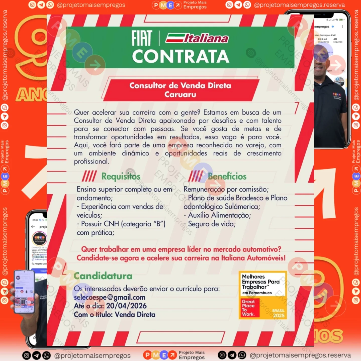 Link do post: https://www.instagram.com/projetomaisempregos/p/DW9-C2klanN/