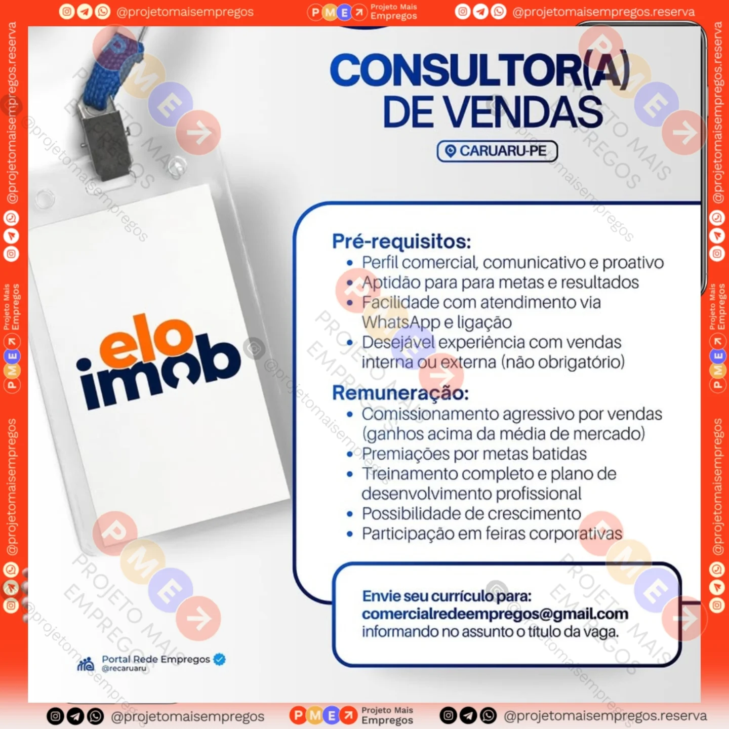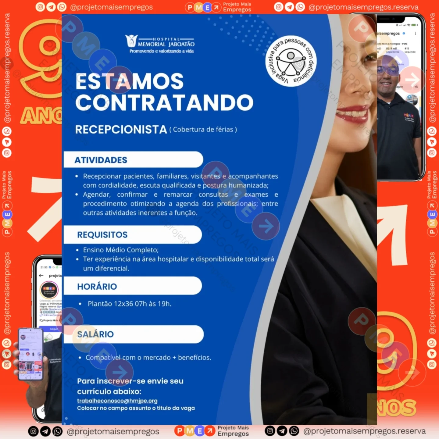 As informações sobre a vaga de emprego, como salário, remuneração, benefícios, requisitos, local de trabalho, forma de candidatura (e-mail ou whatsapp para enviar seu currículo) etc., estarão na imagem acima, caso estejam disponíveis.