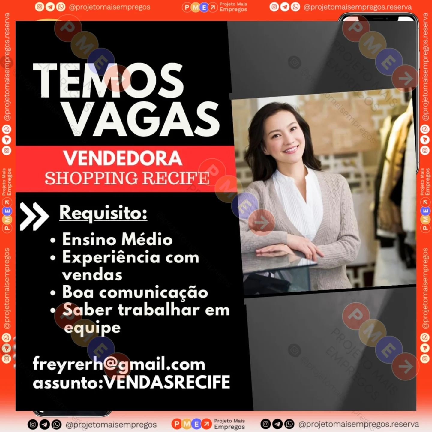 15 Vagas de emprego para Recepcionista, Vendedor(a), Atendente, Supervisor(a), Consultor(a) de Vendas em Pernambuco neste domingo (19/04)
