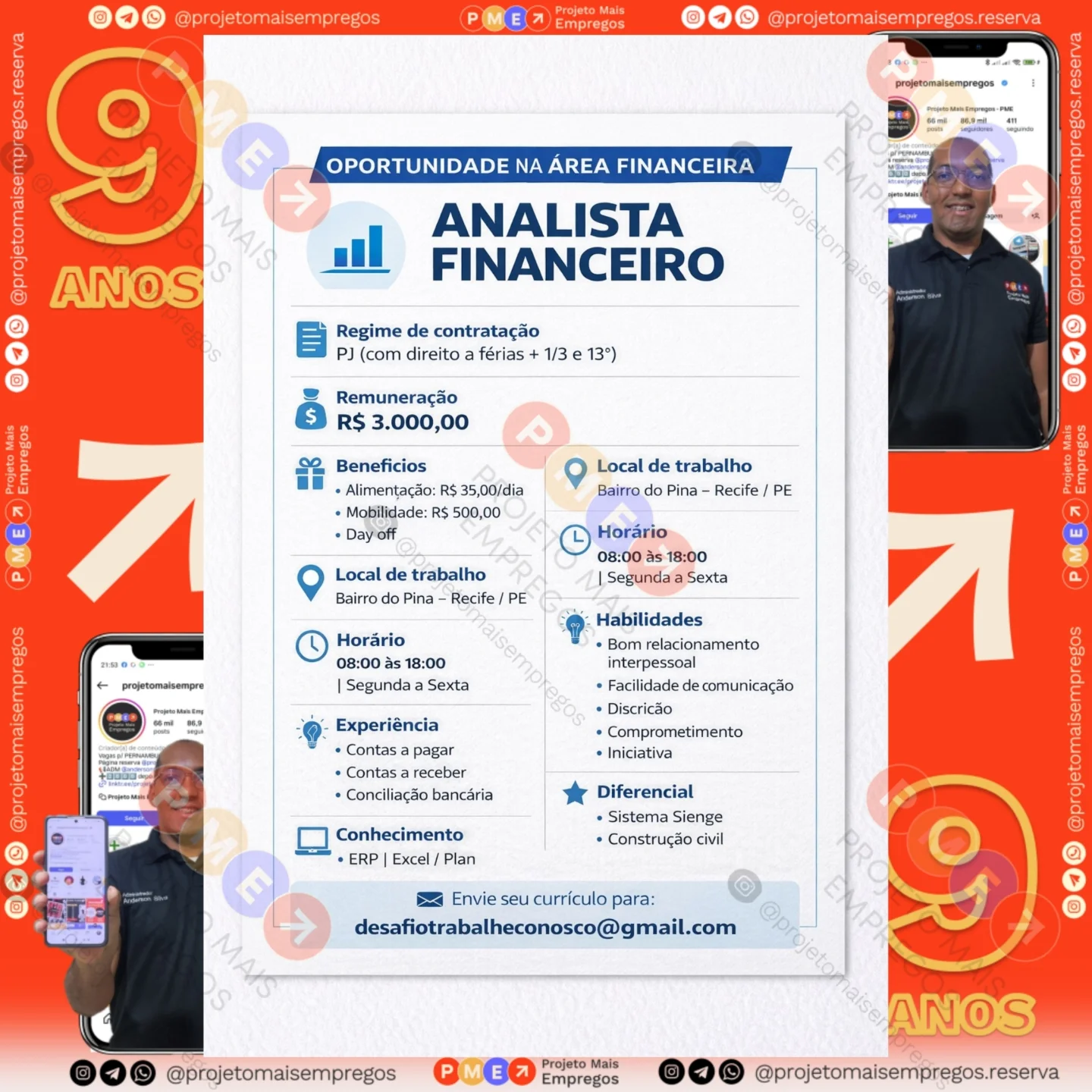 As informações sobre a vaga de emprego, como salário, remuneração, benefícios, requisitos, local de trabalho, forma de candidatura (e-mail ou whatsapp para enviar seu currículo) etc., estarão na imagem acima, caso estejam disponíveis.