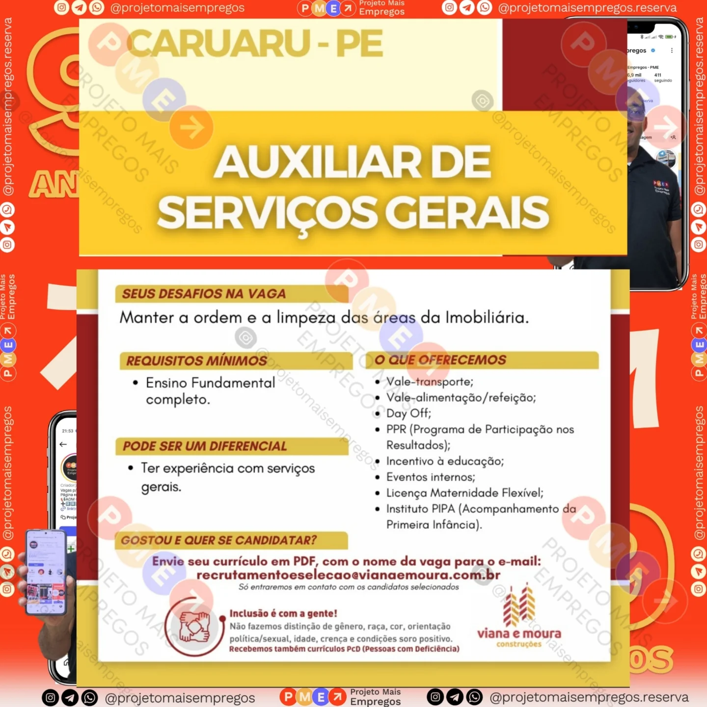 As informações sobre a vaga de emprego, como salário, remuneração, benefícios, requisitos, local de trabalho, forma de candidatura (e-mail ou whatsapp para enviar seu currículo) etc., estarão na imagem acima, caso estejam disponíveis.