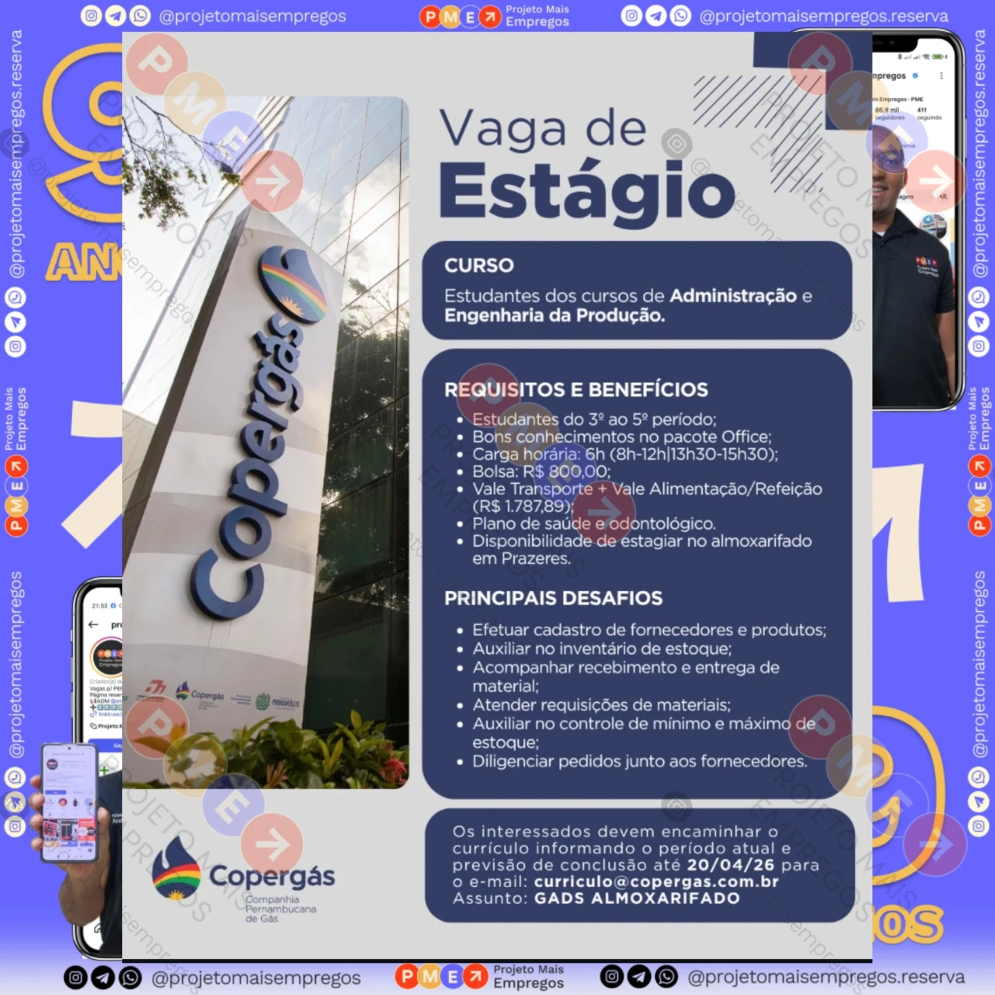17 Vagas de emprego para Auxiliar de Depósito / Almoxarifado, Estagiário(a), Fiscal de Loja em Pernambuco nesta sexta-feira (17/04)