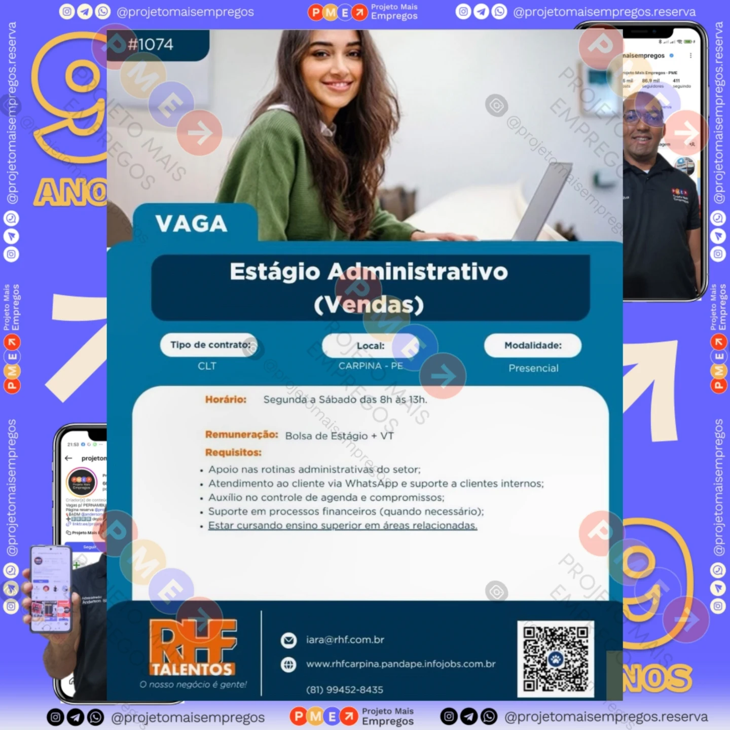 As informações sobre a vaga de emprego, como salário, remuneração, benefícios, requisitos, local de trabalho, forma de candidatura (e-mail ou whatsapp para enviar seu currículo) etc., estarão na imagem acima, caso estejam disponíveis.