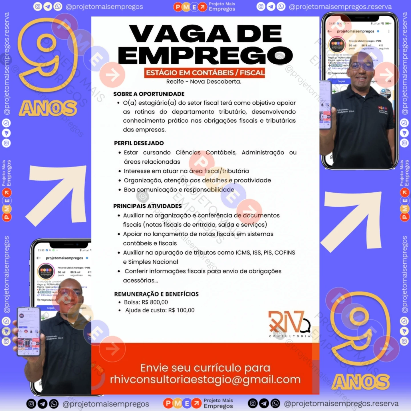 As informações sobre a vaga de emprego, como salário, remuneração, benefícios, requisitos, local de trabalho, forma de candidatura (e-mail ou whatsapp para enviar seu currículo) etc., estarão na imagem abaixo, caso estejam disponíveis.👇
