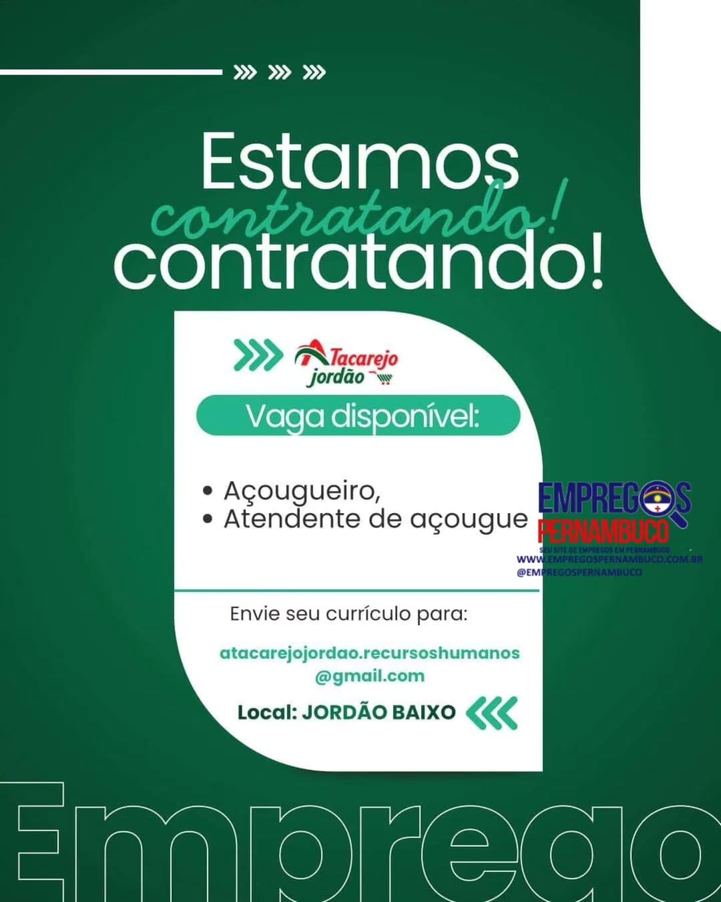 2 Vagas de emprego para Açougueiro(a) em Atacarejo Jordão nesta sexta-feira (10/04)