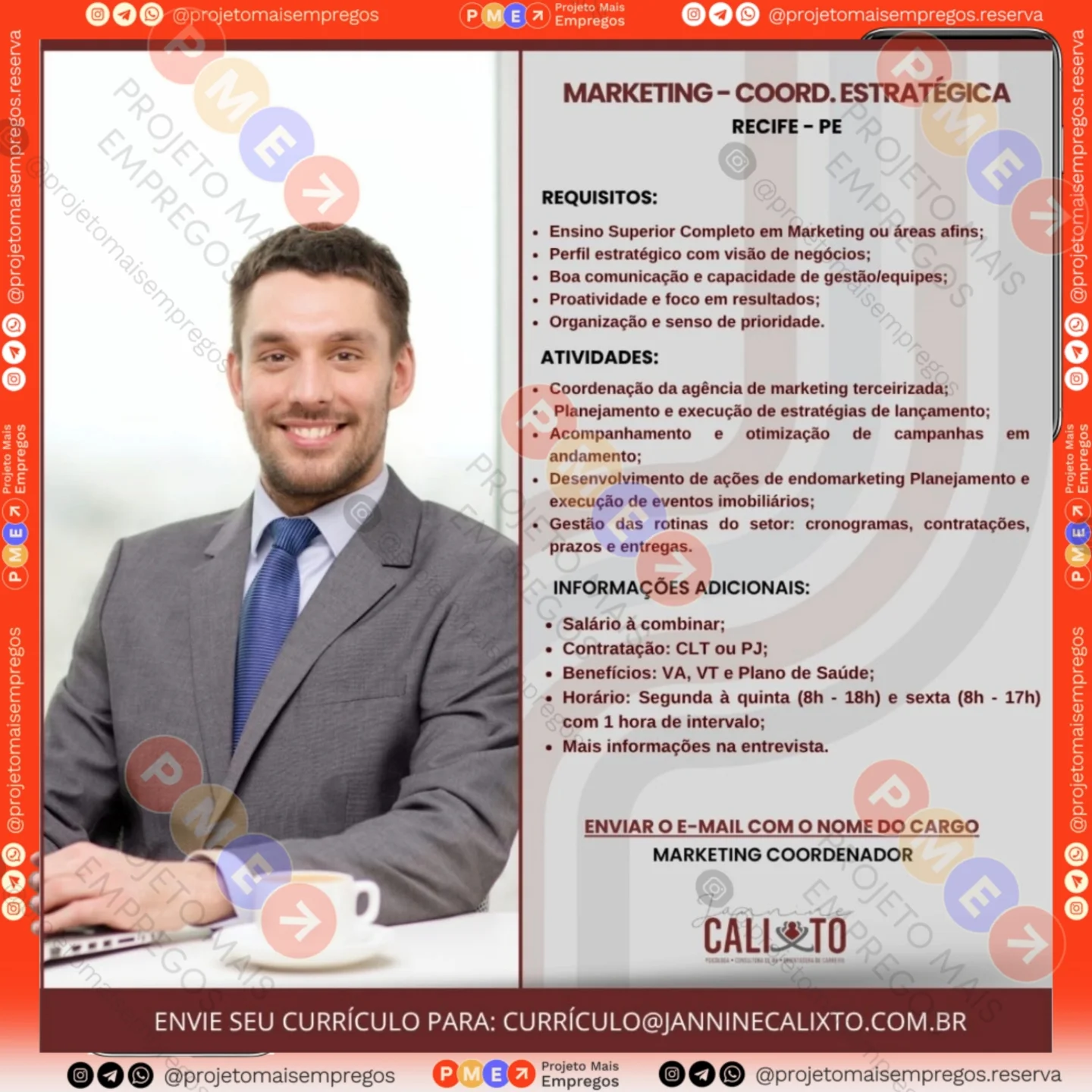 As informações sobre a vaga de emprego, como salário, remuneração, benefícios, requisitos, local de trabalho, forma de candidatura (e-mail ou whatsapp para enviar seu currículo) etc., estarão na imagem acima, caso estejam disponíveis.