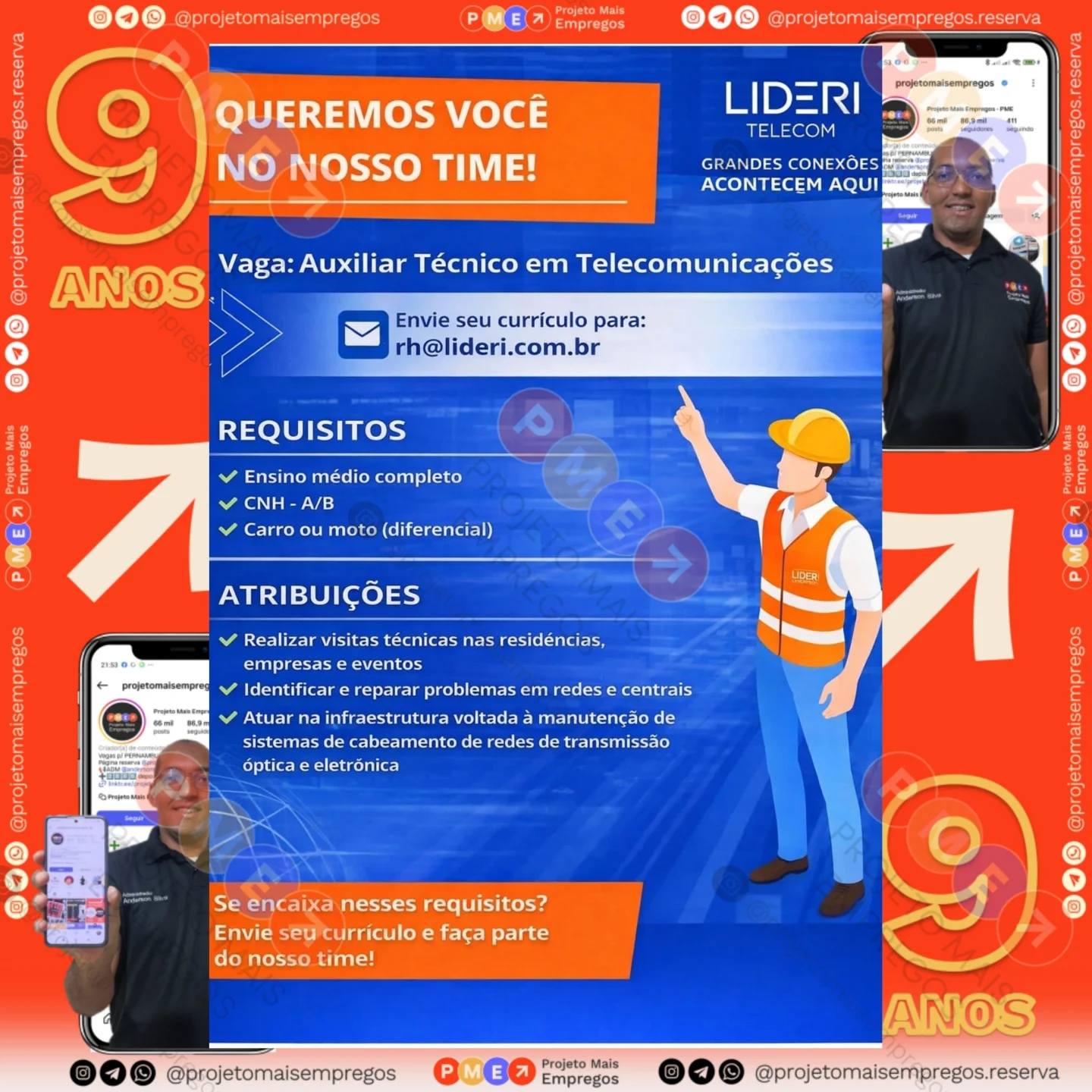 As informações sobre a vaga de emprego, como salário, remuneração, benefícios, requisitos, local de trabalho, forma de candidatura (e-mail ou whatsapp para enviar seu currículo) etc., estarão na imagem abaixo, caso estejam disponíveis.👇