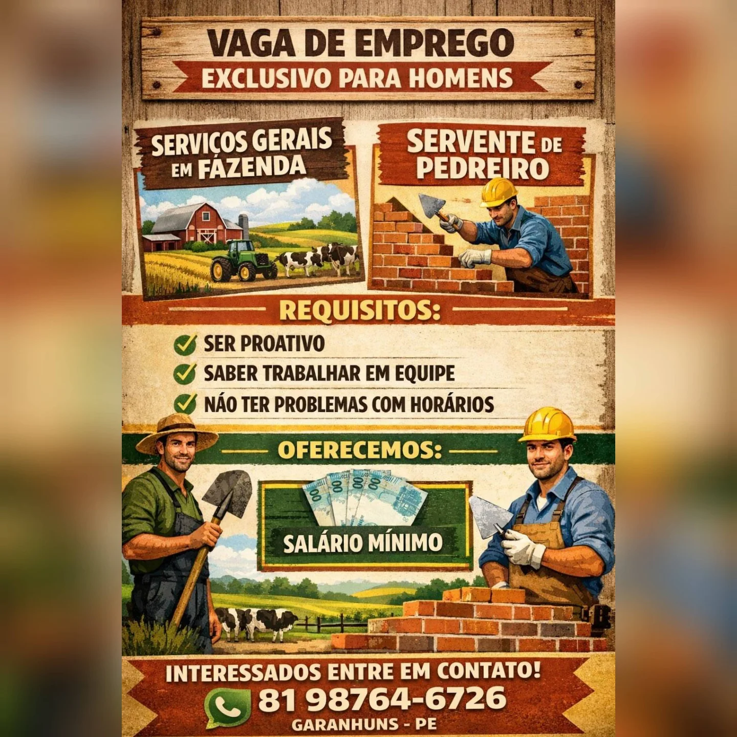 As informações sobre a vaga de emprego, como salário, remuneração, benefícios, requisitos, local de trabalho, forma de candidatura (e-mail ou whatsapp para enviar seu currículo) etc., estarão na imagem acima, caso estejam disponíveis.