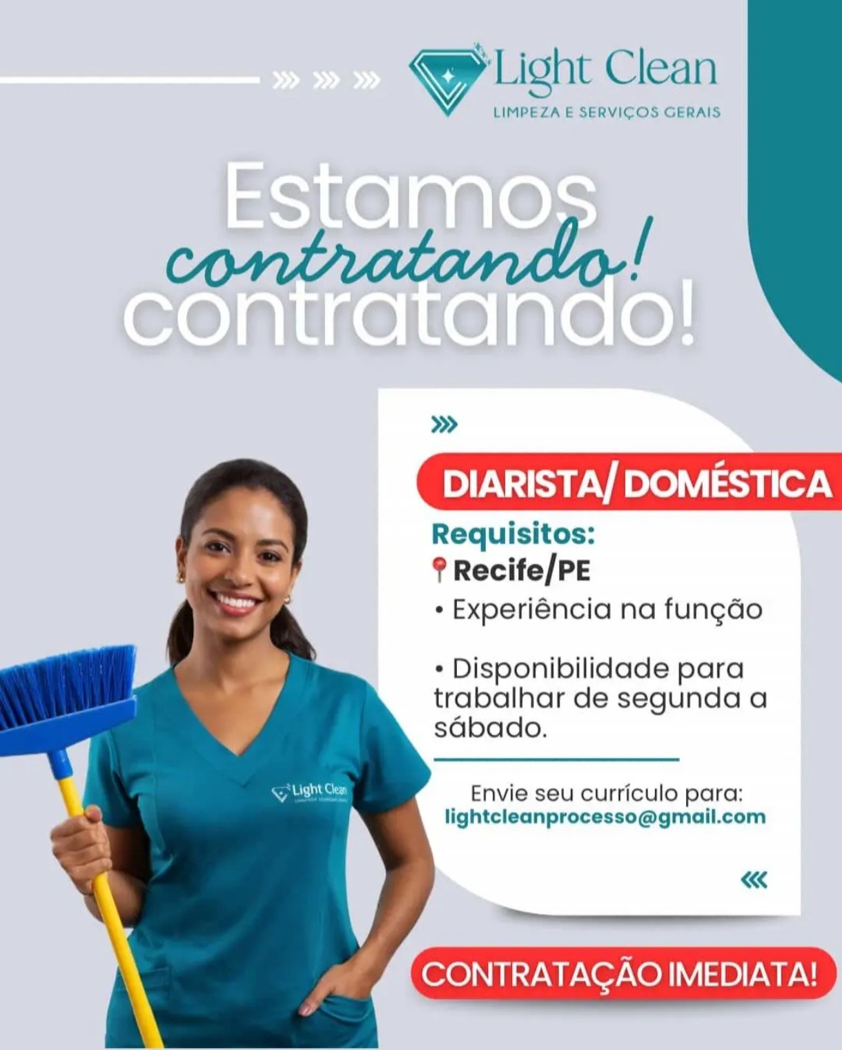 2 Vagas de emprego para Diarista / Folguista, Empregado(A) Doméstica em Light Clean (Limpeza E Serviços Gerais) nesta segunda-feira (30/03)