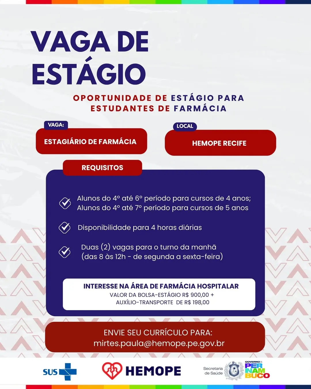 2 Vagas de emprego para Estagiário(a) em Hemope nesta sexta-feira (10/04)