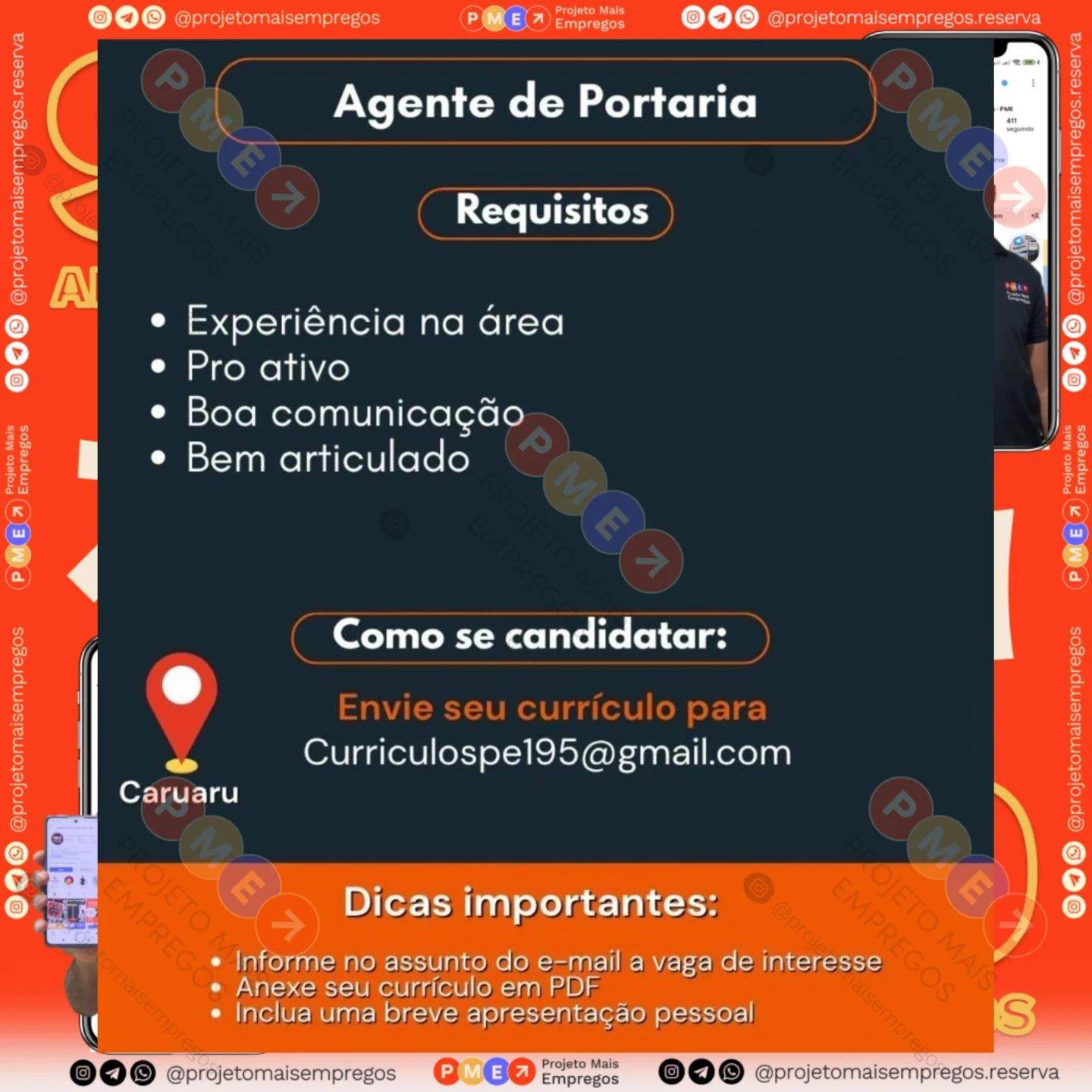 As informações sobre a vaga de emprego, como salário, remuneração, benefícios, requisitos, local de trabalho, forma de candidatura (e-mail ou whatsapp para enviar seu currículo) etc., estarão na imagem abaixo, caso estejam disponíveis.👇