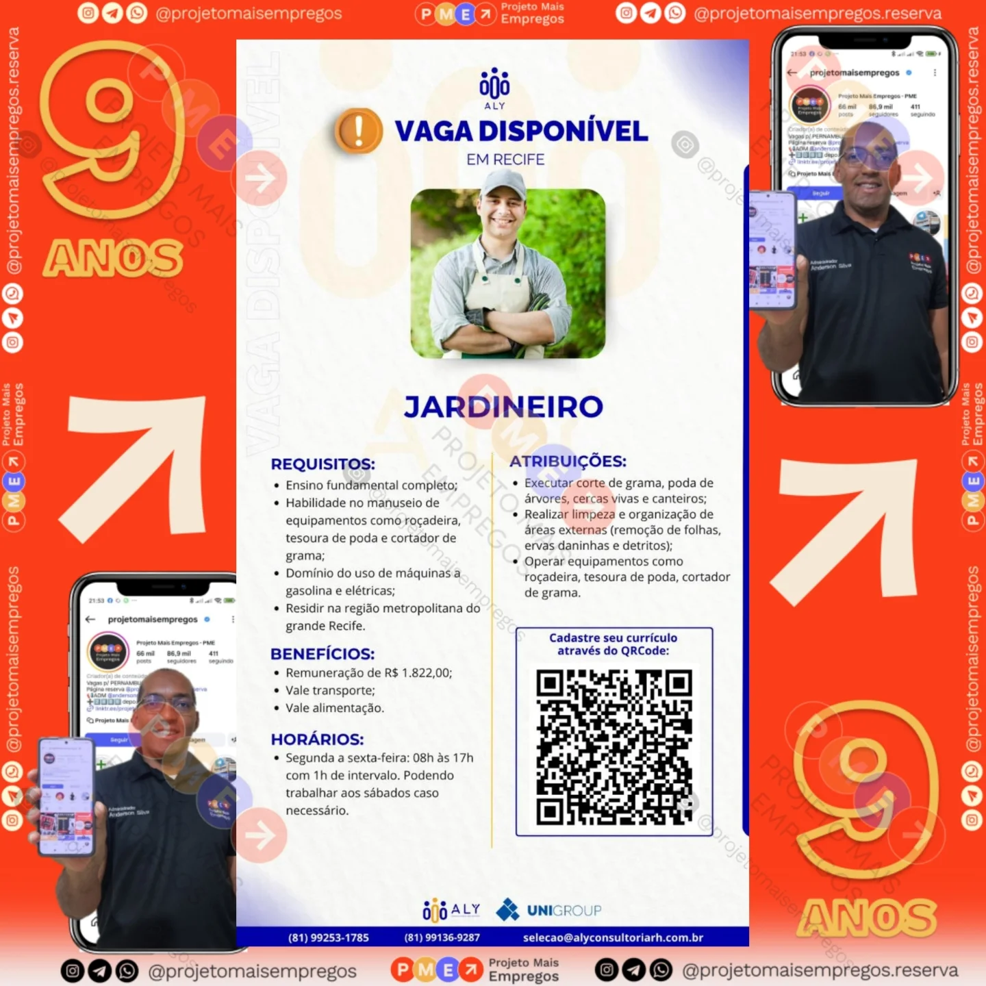 As informações sobre a vaga de emprego, como salário, remuneração, benefícios, requisitos, local de trabalho, forma de candidatura (e-mail ou whatsapp para enviar seu currículo) etc., estarão na imagem acima, caso estejam disponíveis.