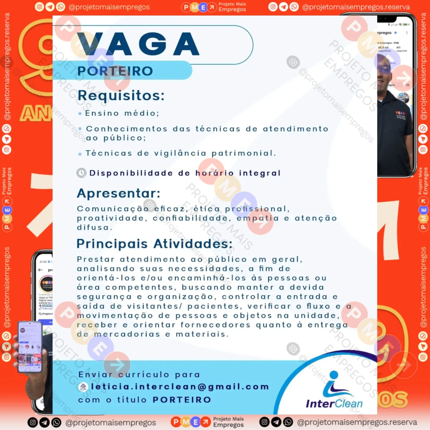 Quantidade de vagas: PORTEIRO(A) / ZELADOR: 2