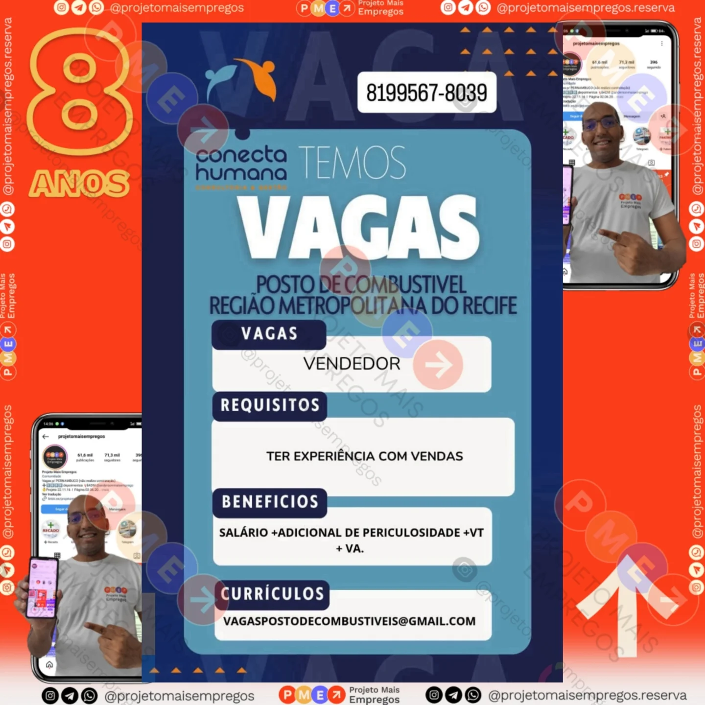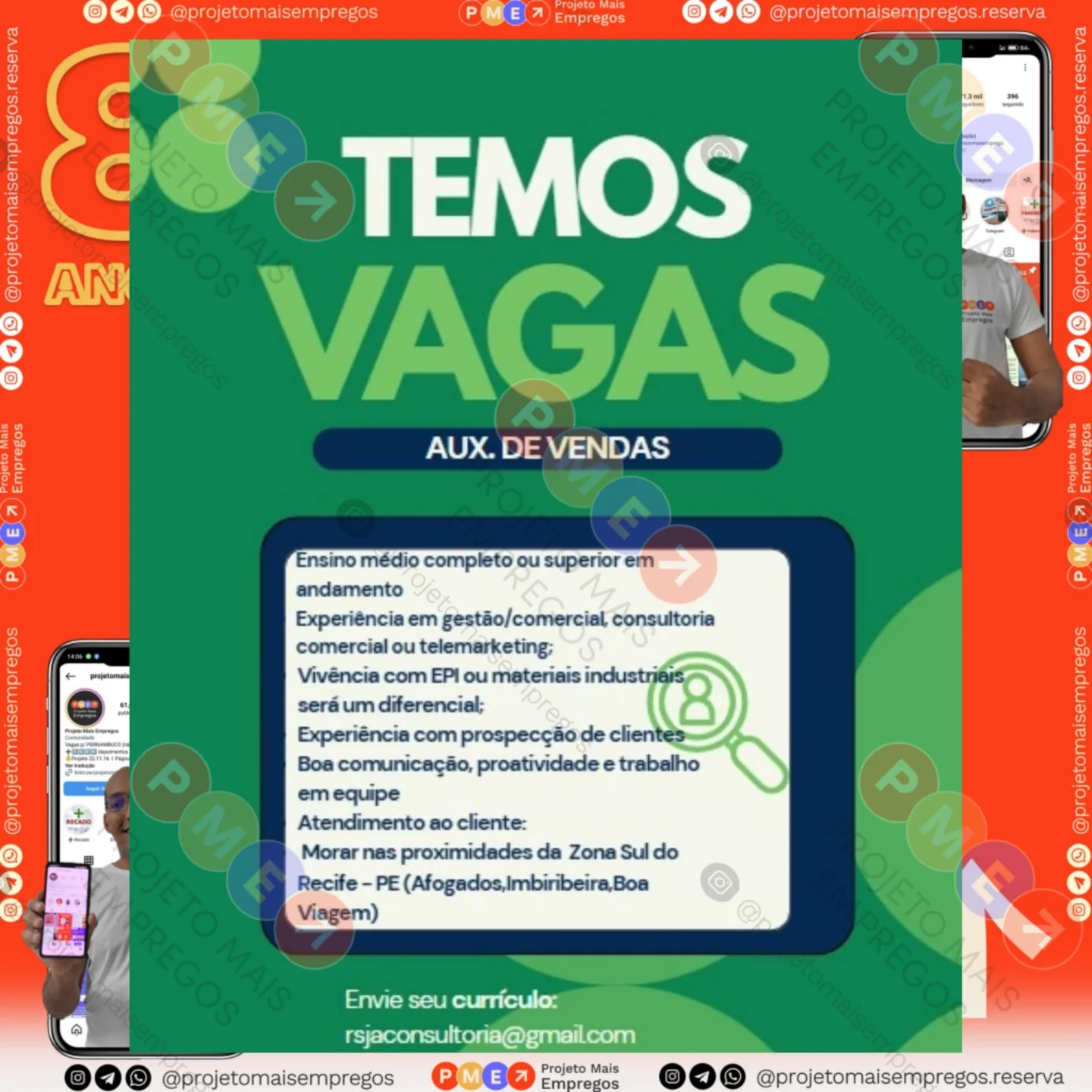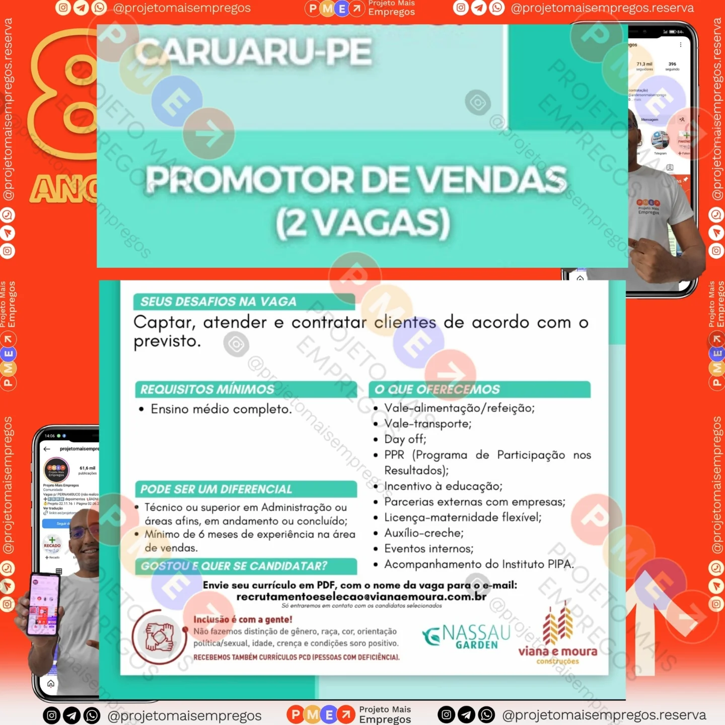 As informações sobre a vaga de emprego, como salário, remuneração, benefícios, requisitos, local de trabalho, forma de candidatura (e-mail ou whatsapp para enviar seu currículo) etc., estarão na imagem acima, caso estejam disponíveis.