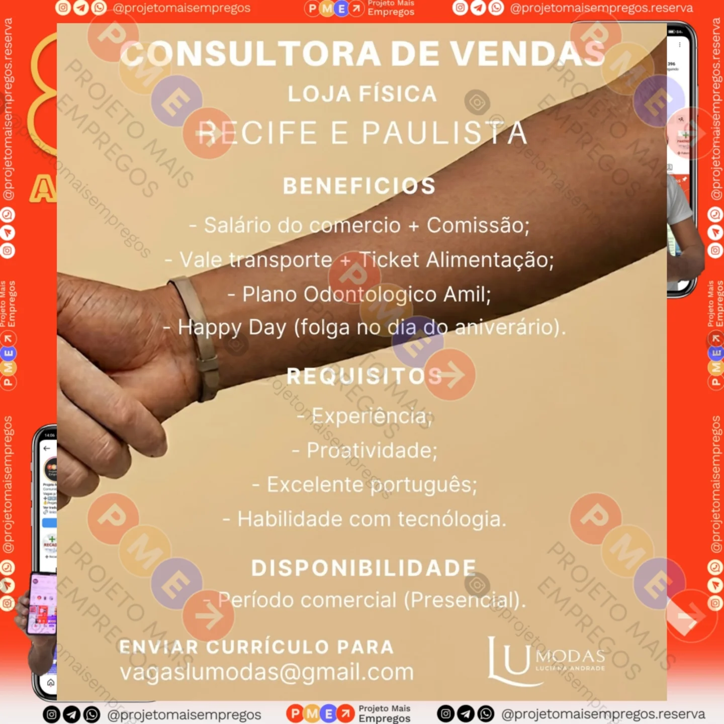 As informações sobre a vaga de emprego, como salário, remuneração, benefícios, requisitos, local de trabalho, forma de candidatura (e-mail ou whatsapp para enviar seu currículo) etc., estarão na imagem abaixo, caso estejam disponíveis.👇