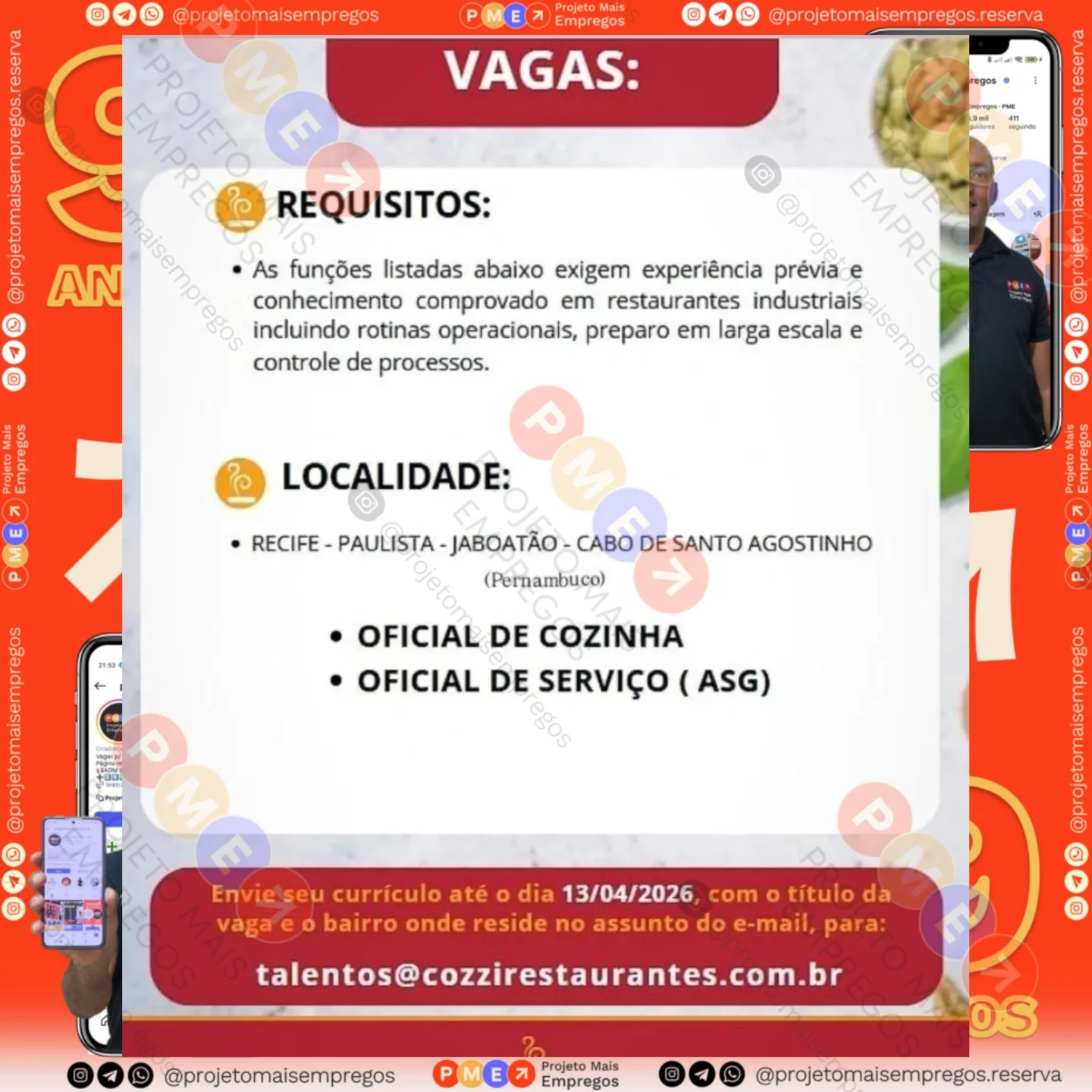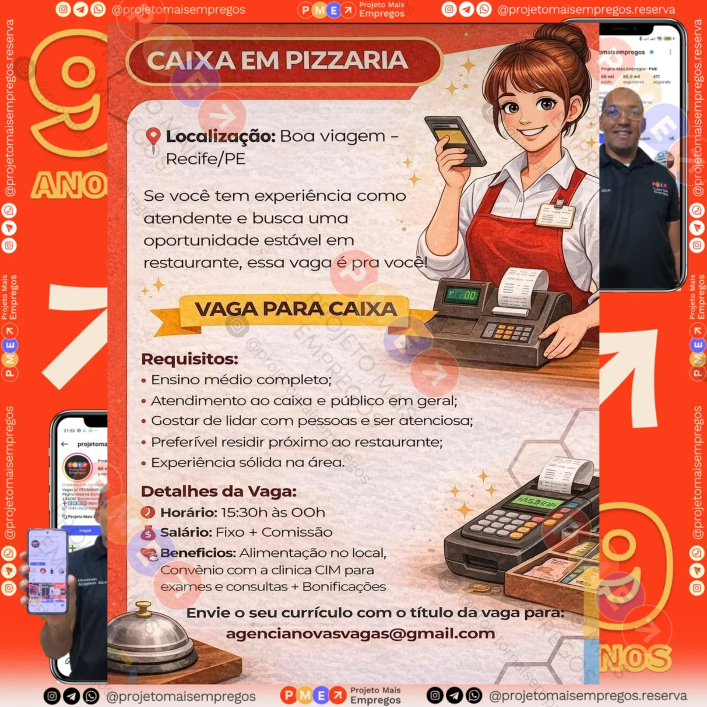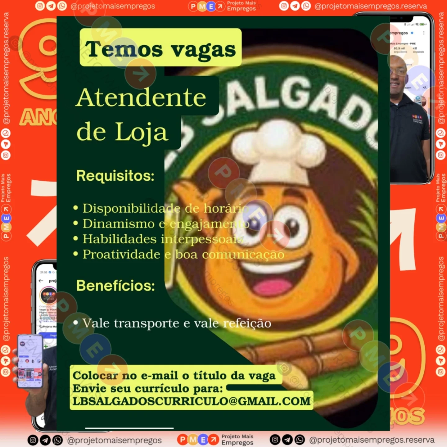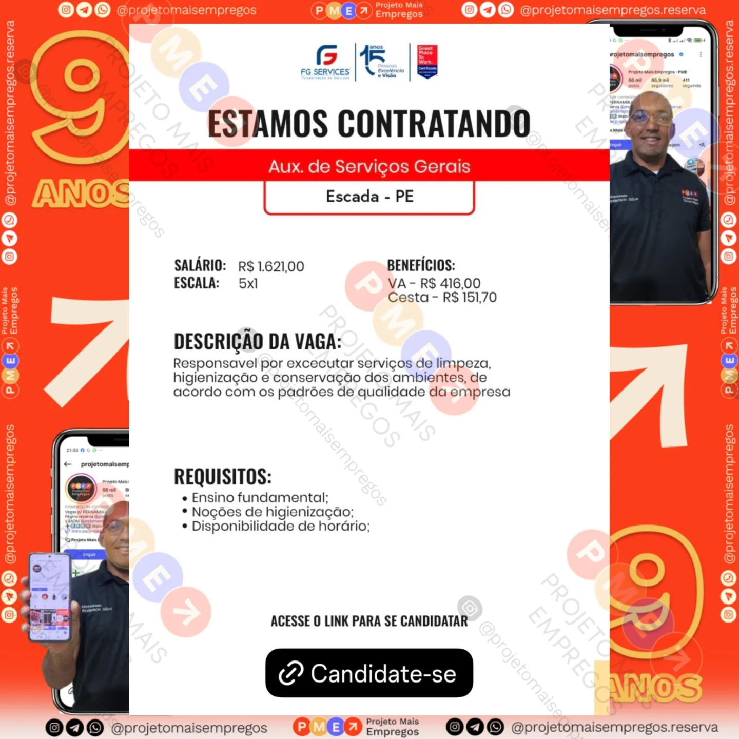 As informações sobre a vaga de emprego, como salário, remuneração, benefícios, requisitos, local de trabalho, forma de candidatura (e-mail ou whatsapp para enviar seu currículo) etc., estarão na imagem acima, caso estejam disponíveis.