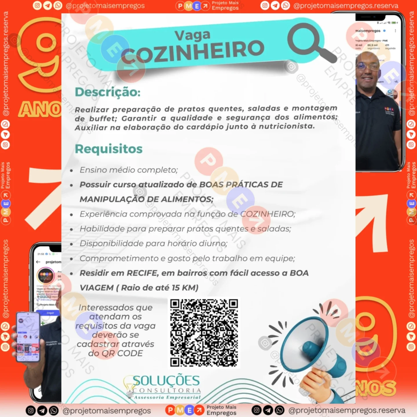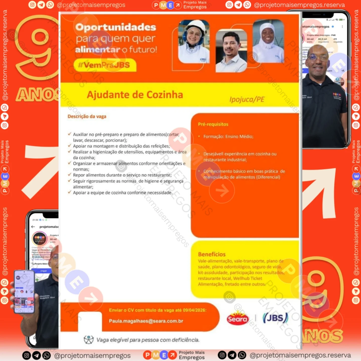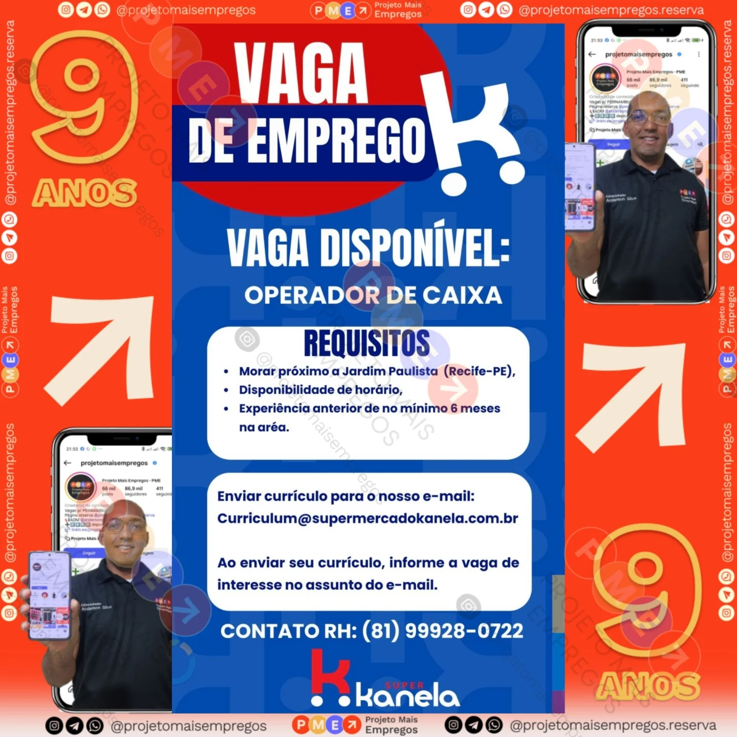 As informações sobre a vaga de emprego, como salário, remuneração, benefícios, requisitos, local de trabalho, forma de candidatura (e-mail ou whatsapp para enviar seu currículo) etc., estarão na imagem acima, caso estejam disponíveis.