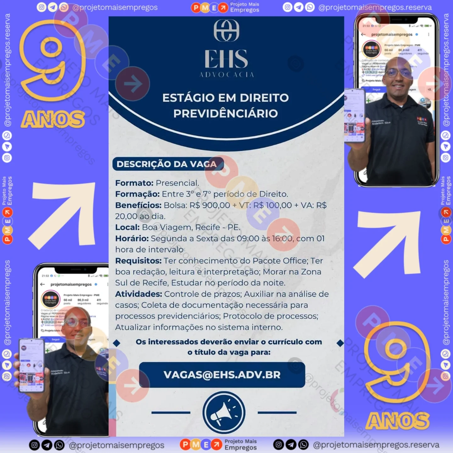 As informações sobre a vaga de emprego, como salário, remuneração, benefícios, requisitos, local de trabalho, forma de candidatura (e-mail ou whatsapp para enviar seu currículo) etc., estarão na imagem acima, caso estejam disponíveis.